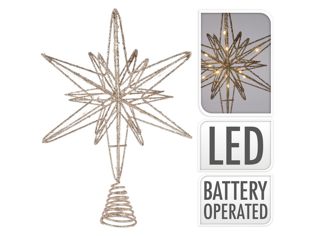 špička na stromek 20LED HVĚZDA 33cm CHAMPAGNE/ZLA
