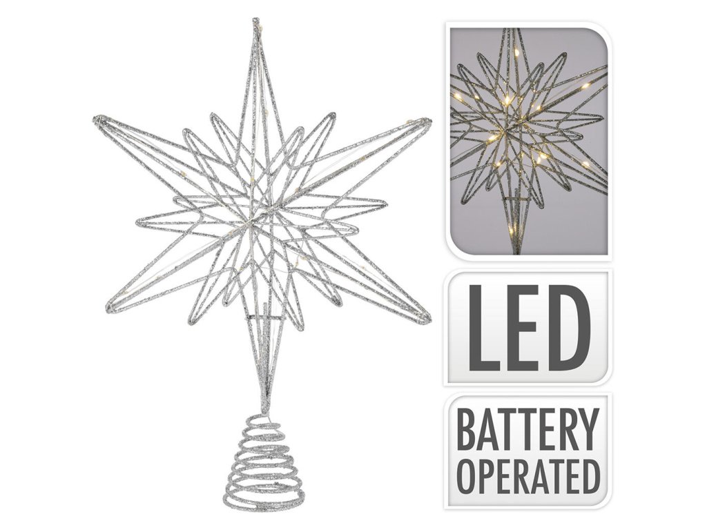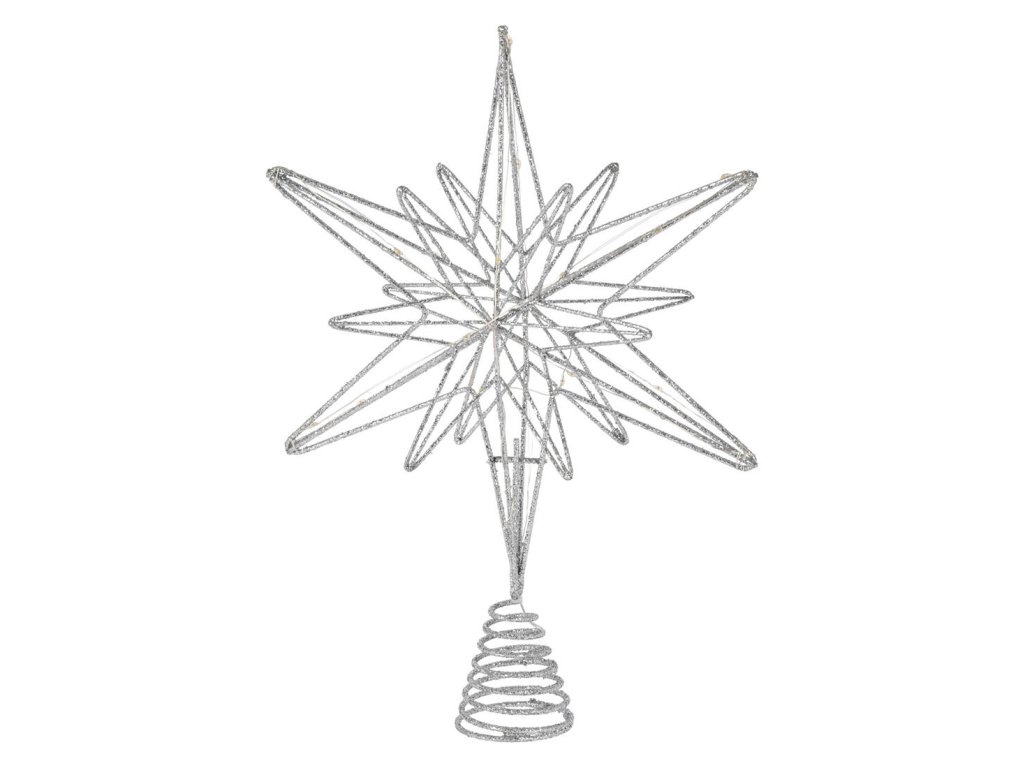 Špička na stromek 20 LED HVĚZDA 33 cm STŘ tvar: hvězda rozměry: 33 cm barva: stříbrná Hvězda je ideální pro zdobení vánočního stromku v našich domovech. Ve tmě vypadá krásně a dodává prostorům atmosféru. Skvěle doplní osvětlení vánočního stromečku.Obrázky jsou pouze ilustrativní.