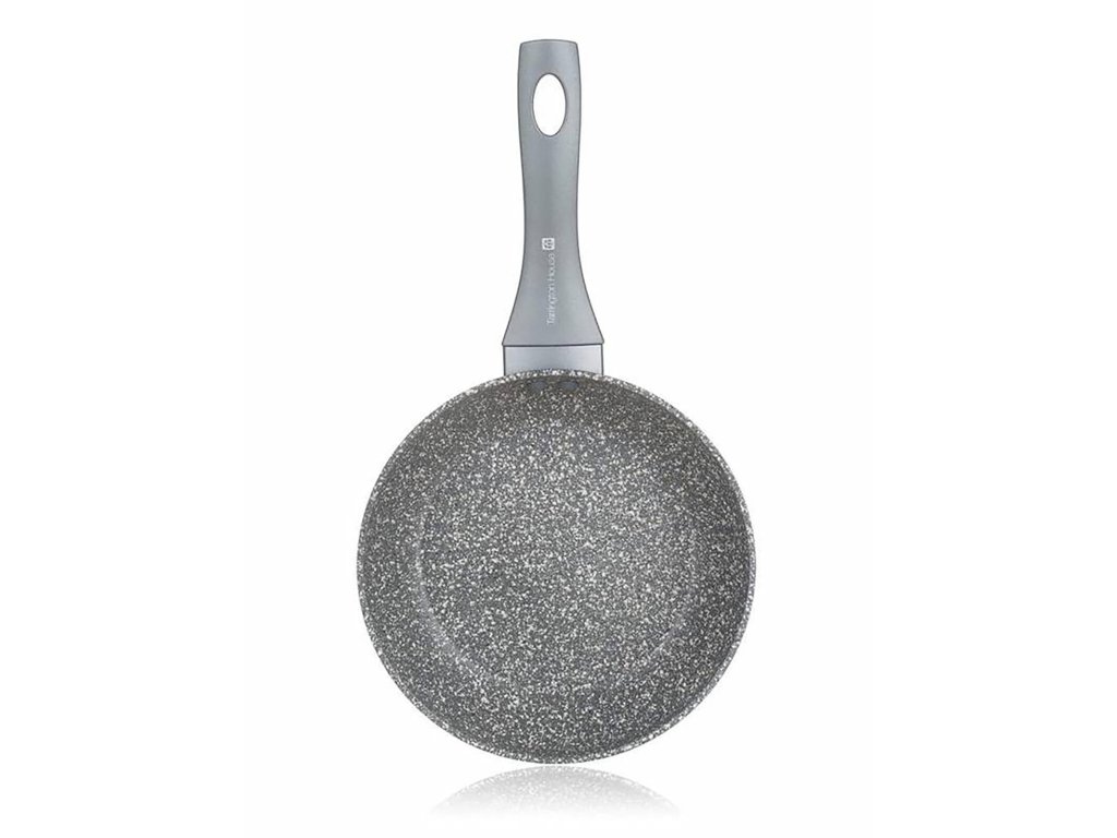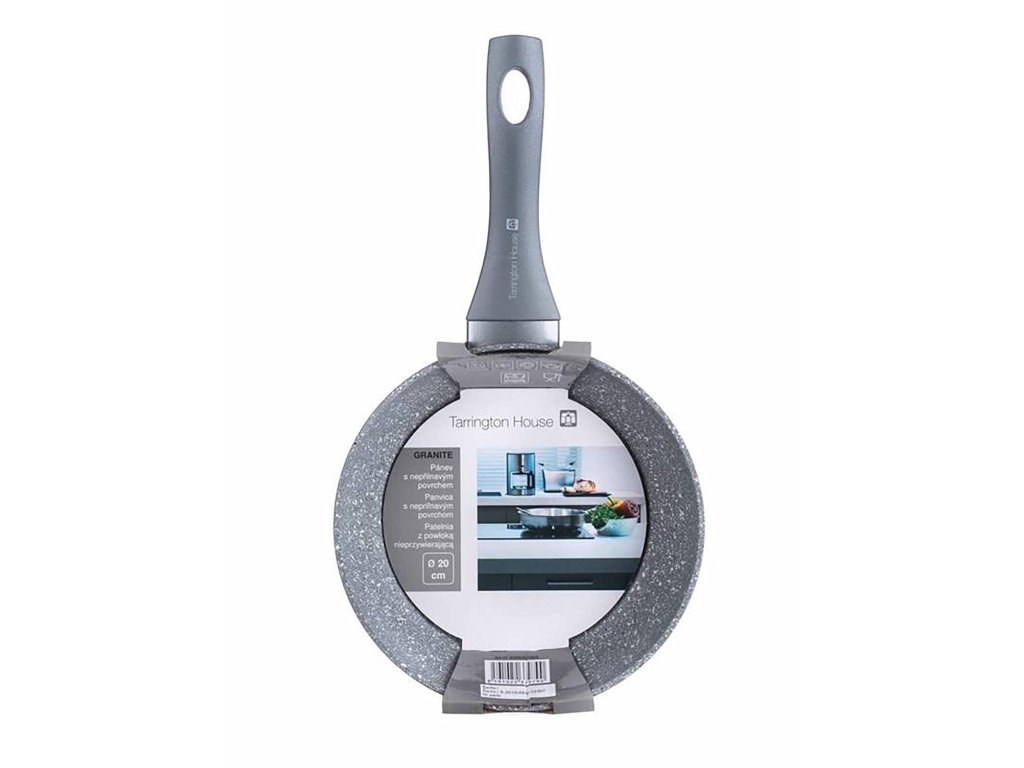 Pánev 20 x 4,3 cm, nepřilnavý povrch, GRANITE GREY Tarrington House. průměr: 20 cm výška: 4,3 cm tloušťka stěny: 3 mm dekor: granitový šedý Hliníková litá kovaná pánev GRANITE GREY s nepřilnavým povrchem. Plně indukční dno, soft-touch rukojeť. Nepřilnavý povrch je velmi tvrdý a odolný proti poškrábání. Pánev je odolná proti nárazu a deformaci tvaru. Vysoká tepelná vodivost zajišťuje rychlé a ekonomické vaření - dlouho drží teplotu.Obrázky jsou pouze ilustrativní.