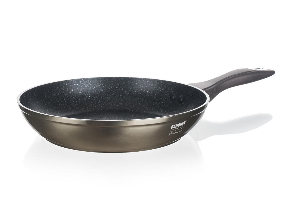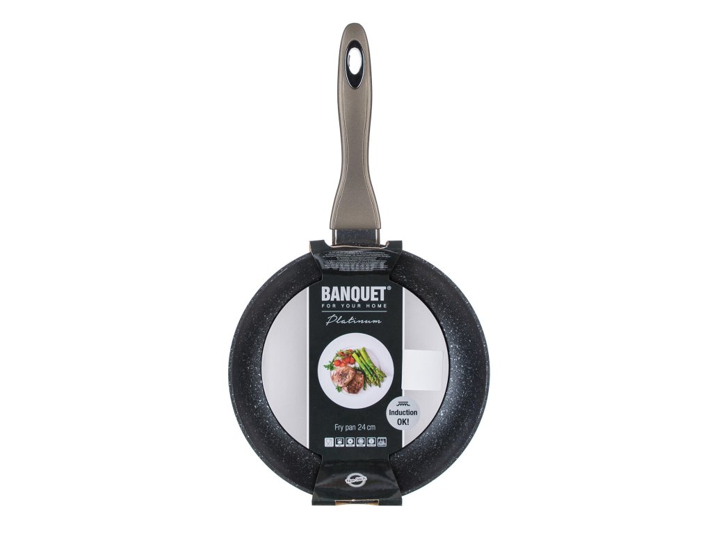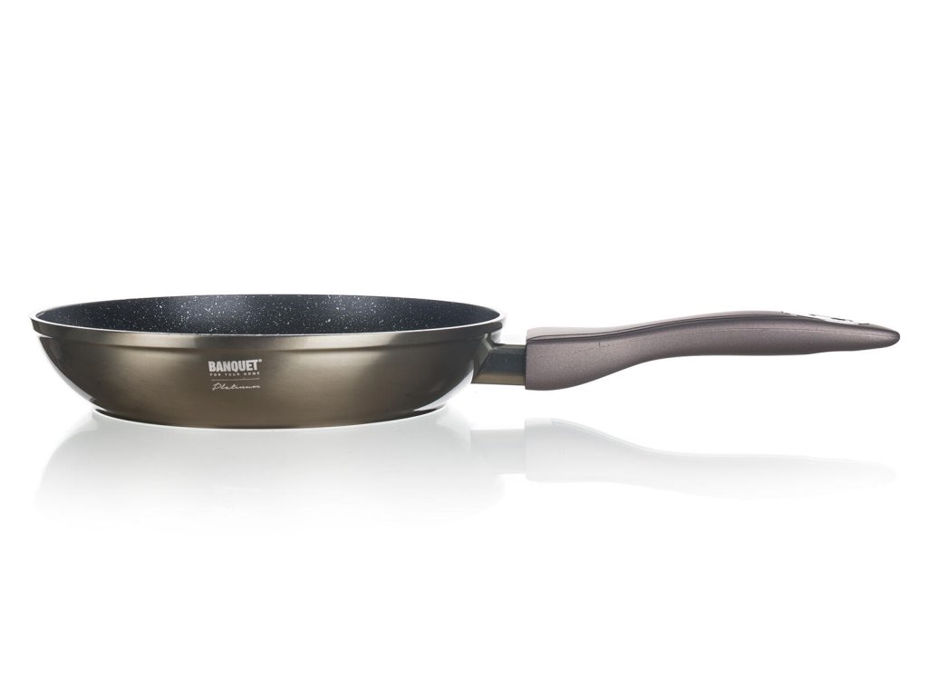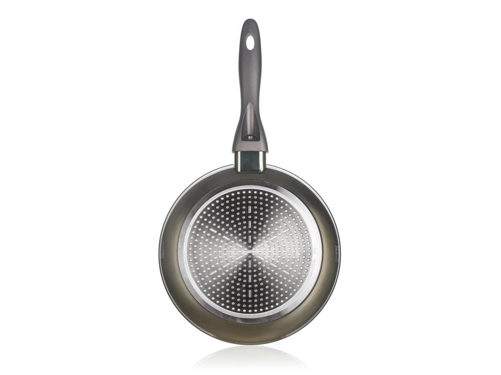 Pánev 24 x 4,8 cm, nepřiln. povrch, METALLIC PLATINUM. průměr: 24 cm výška: 4,8 cm tloušťka stěny: 3 mm Hliníková litá kovaná pánev METALLIC PLATINUM s nepřílnavým povrchem. Vnější karbon metalický nástřik, plně indukční dno, soft - touch rukojeť. Nepřilnavý povrch je velmi tvrdý a odolný proti poškrábání. Pánev je odolná proti nárazu a deformaci tvaru. Vysoká tepelná vodivost zajišťuje rychlé a ekonomické vaření - dlouho drží teplotu.Obrázky jsou pouze ilustrativní.
