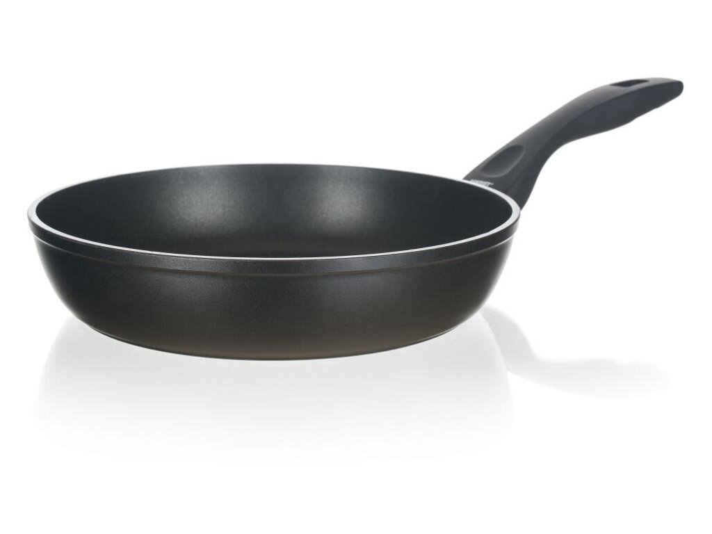 Pánev 26 x 5,8 cm, nepřilnavý povrch, GRAZIA. průměr: 26 cm výška: 5,8 cm tloušťka stěny: 4 mm barva: matná černá Hliníková kovaná pánev GRAZIA se značkovým nepřílnavým 3vrstvým povrchem ILAG PREMIUM. Vnější 2vrstvý žáruvzdorný nástřik. Indukční dno s piktogramovým laserovým potiskem.Obrázky jsou pouze ilustrativní.