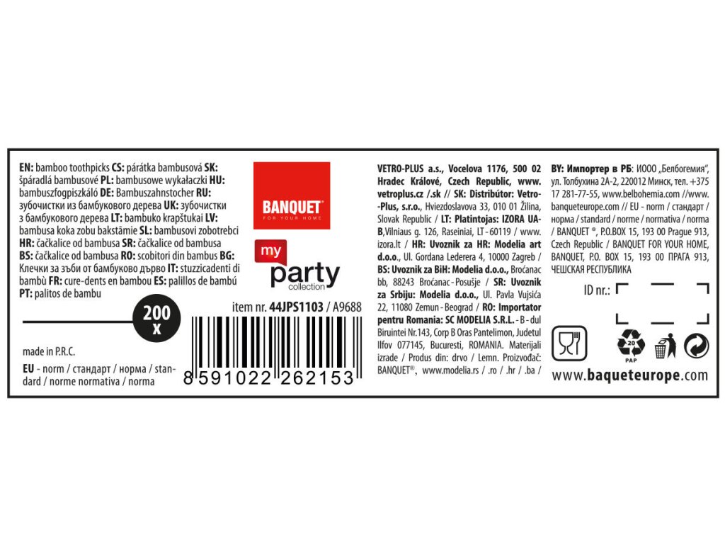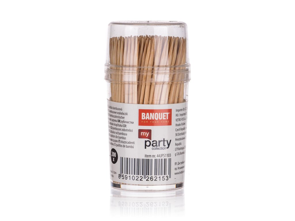 Párátka kulatá, oboustranná, bambus (200 ks) + PH box kulatý. délka: 6,5 cm materiál: bambus plastový box s dávkovačem Párátka Party Collection, oboustranně hrocená.Obrázky jsou pouze ilustrativní.