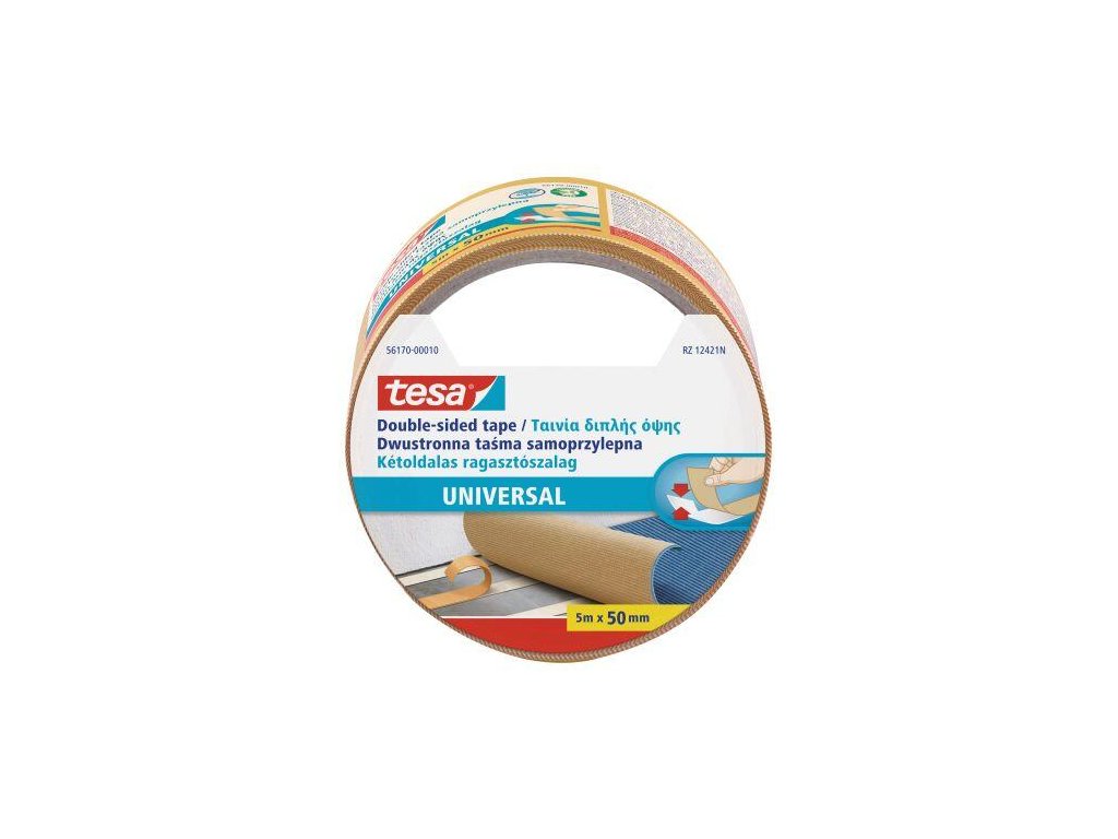 Páska kobercová 50 mm x 5 m univwrzální TESA. rozměry: 50 mm x 5 m Lepící pásky TESA patří mezi nejkvalitnější pásky na trhu. Vynikají extrémní odolností proti povětrnostním podmínkám, velmi vysokou přilnavostí a extrémní silou v tahu.Obrázky jsou pouze ilustrativní.