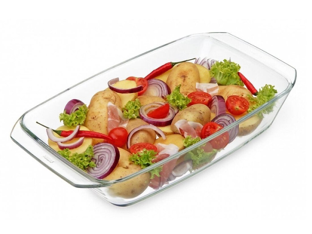 Mísa hranatá 2,4 l, 35,1 x 19,5 x 5,7 cm, 7046 skl. objem: 2,4 l rozměry: 35,1 x 19,5 x 5,7 cm materiál: sklo Praktická mísa vyrobená z kvalitního a tepelně odolného borosilikátového skla SIMAX. Ideální k zapékání, dušení a pečení. Je vhodná do všech typů trub vč. mikrovlnné trouby, do myčky na nádobí, ale také k uskladnění potravin v lednici. Schváleno pro styk s potravinami v domácnostech i profesionálních provozech. Výrobky z hlediska zdravotní nezávadnosti a bezpečnosti při používání podléhají dozoru státních kontrolních orgánů České republiky. Vyrobeno ze skla bez obsahu kadmia a olova. Dodržujte zásadu pozvolného ochlazování. Myjte jemnými mycími prostředky, které sklo nepoškrábou.Obrázky jsou pouze ilustrativní.