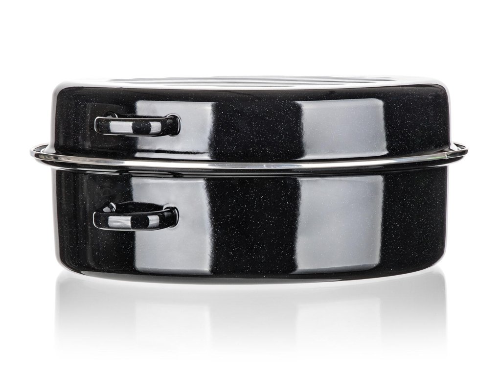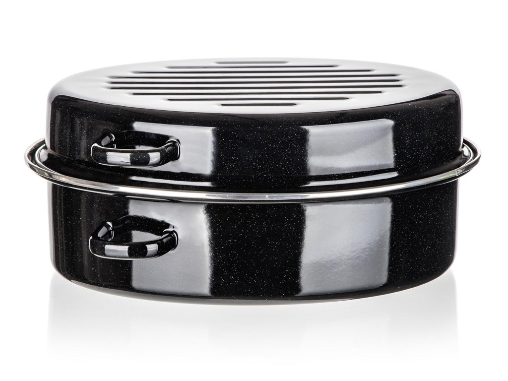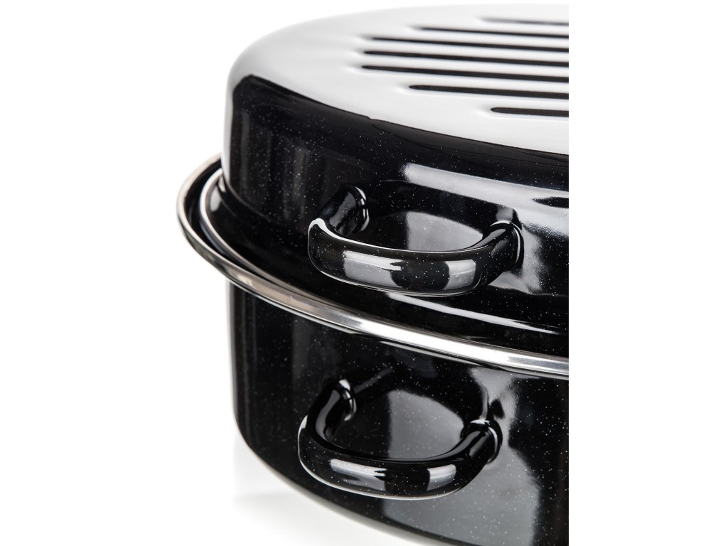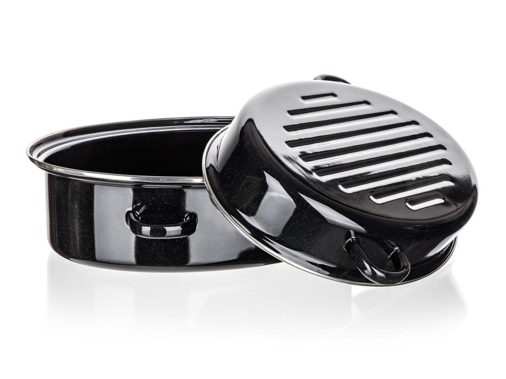 Pekáč 38 x 23,5 x 17 cm, 2díl. (6,5 + 4 l) smalt. BANQUET. objem: 4 l + 6,5 l vnitřní délka: 38 cm vnější délka: 40 cm vnitřní šířka: 23,5 cm vnější šířka: 27,5cm výška: 17 cm materiál: smaltovaná ocel tloušťka stěny: 0,7 mm barva: černá Dvoudílný oválný smaltovaný pekáč CULINARIA Black. elektrika: ano plyn: ano sklokeramika: ano indukce: ano myčka: ne mikrovlnka: ne trouba: anoObrázky jsou pouze ilustrativní.