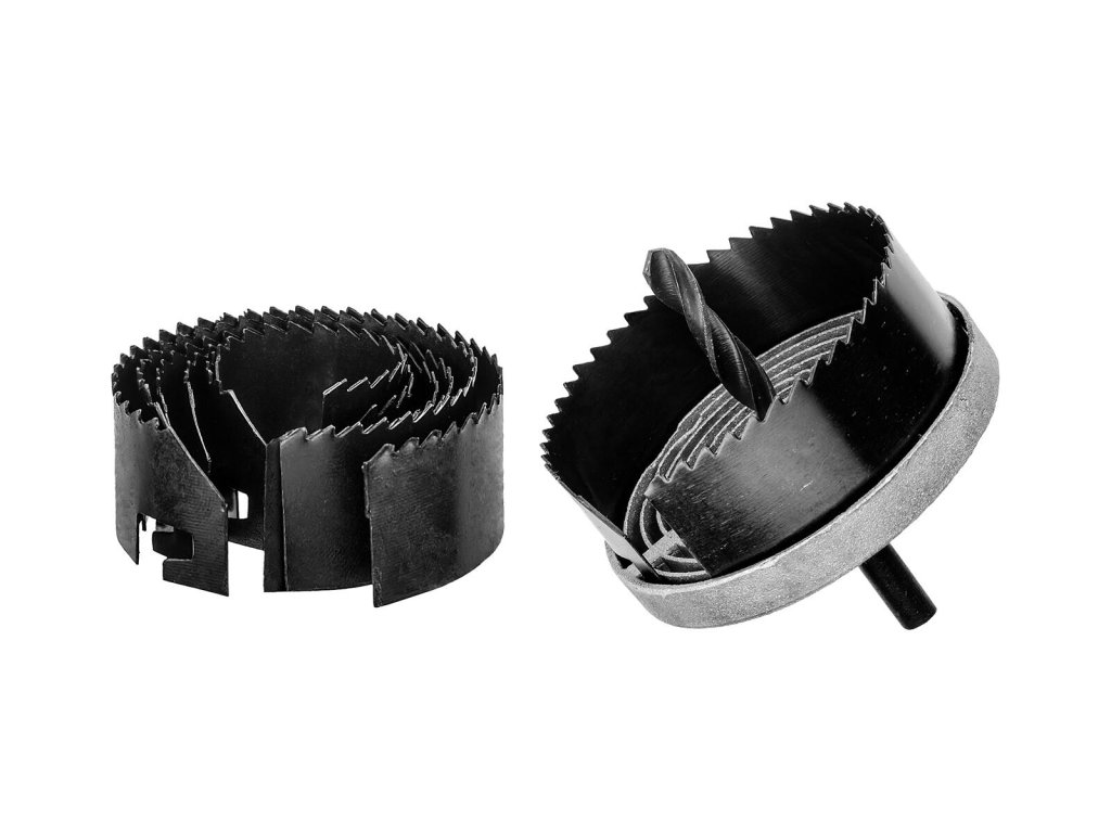 pilka vykružovací 1" sadaSada vykružovacích pil do dřeva, sádrokartonu, dřevotřísek apod., s upevněním do vrtačky. Obsahuje 7 kusů pil o průměrech 26, 32, 38, 45, 50, 56 a 63 mm.Obrázky jsou pouze ilustrativní.