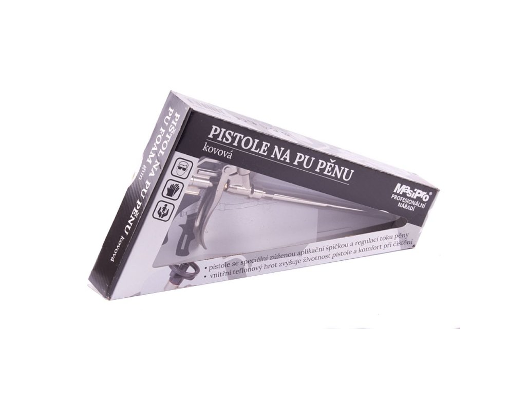 Vysoce kvalitní pistole se speciální zúženou špičkou a regulací toku pěny.