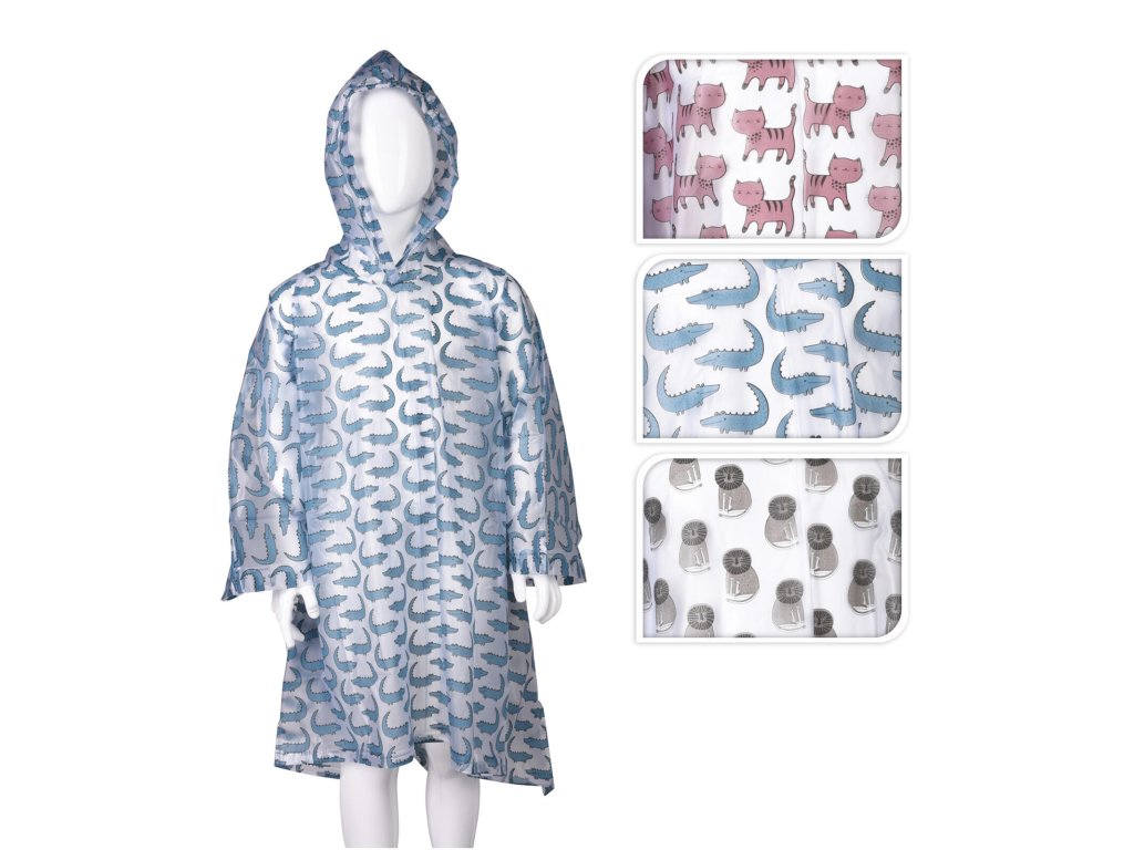 Pláštěnka pončo pro děti PES mix barev. materiál: PES barva: mix barev Pláštěnka tvoří nepostradatelnou součást základní výbavy v případě deštivých a větrných dnů, kdy spolehlivě ochrání vrchní vrstvu oblečení před promočením.Obrázky jsou pouze ilustrativní.