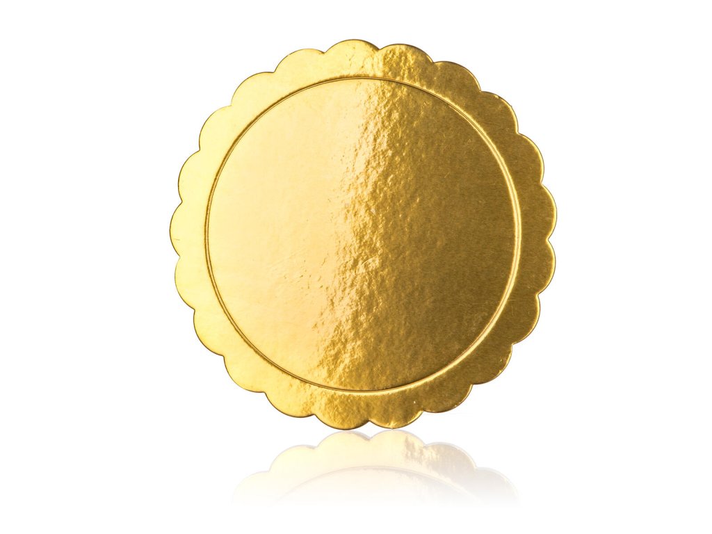 Podložka pod dort 25,5 x 0,3 cm, oboustranná. průměr: 25,5 cm Kulatá podložka na dort CULINARIA. Podložka je vyrobena ze několikavrstvého 3 mm silného kartonu. Z obou stran je potažena zlatou fólií, která zaručuje voděodolnost a nepromastitelnost. Podložka pod dorty je ideální pracovní tácek, využijete ji při práci s dortem, finálním dozdobení a také k přenášení dortu.Obrázky jsou pouze ilustrativní.