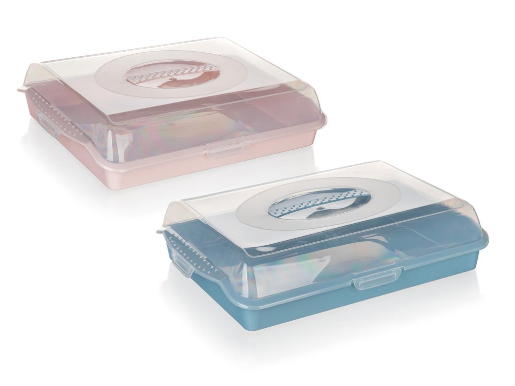 Podnos s krytem 45 x 35 cm, PH mix barev. rozměry: 45 x 35 x 10,5 cm materiál: plast mix barev: růžová, modrá Plastový podnos s víkem CULINARIA je vhodný k přepravě a uchování koláčů a dalších zákusků. Dodáván ve dvou barvách, víko je transparentní.Obrázky jsou pouze ilustrativní.
