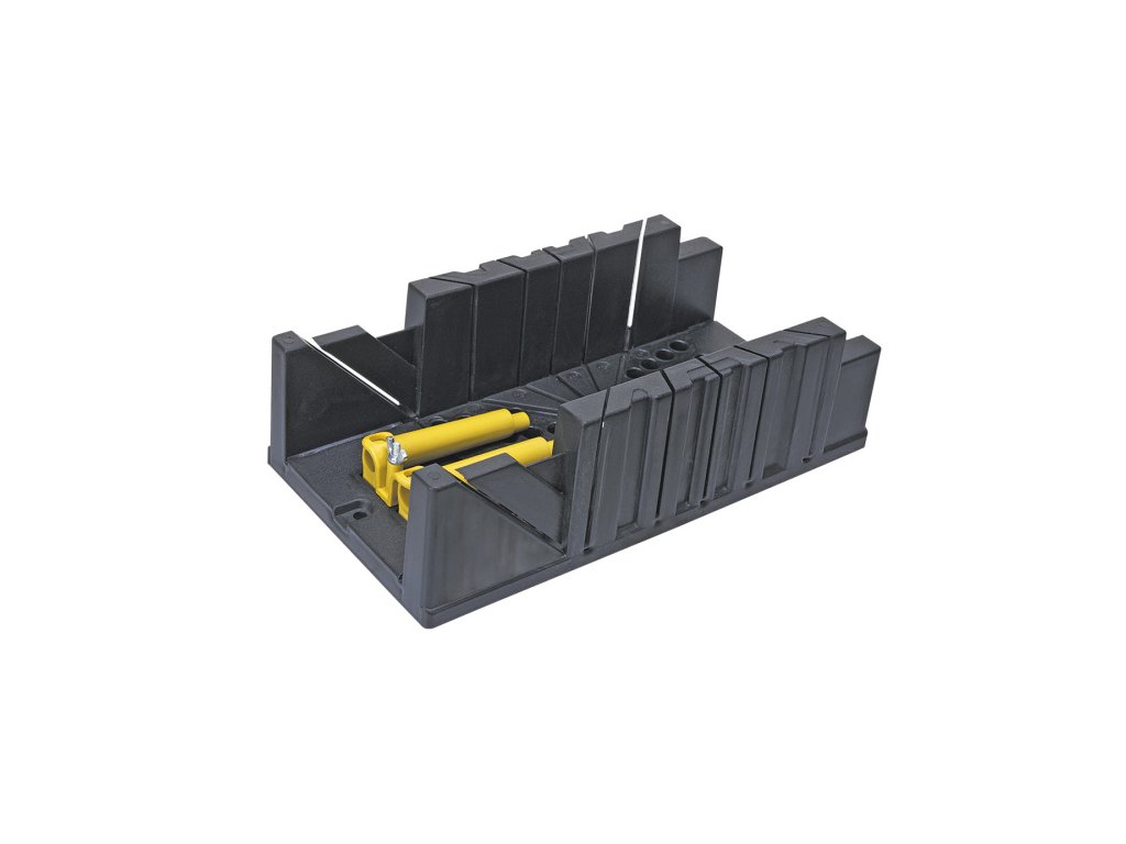 Plastový úkosový box, řezné úhly: 22.5°, 45° (svisle a vodorovně), 90°, včetně excentrických montážních svorek Úkosová krabička TOPEX (č. v. 10A848) určená k ručnímu řezání pásů pod úhlem 22,5°, 45° nebo 90°. Vyrobeno z vysoce kvalitního plastu. Je vybaven svorkami pro přidržování řezaného materiálu, což výrazně zvyšuje komfort práce. Značka TOPEX je určena pro domácí kutily.Obrázky jsou pouze ilustrativní.