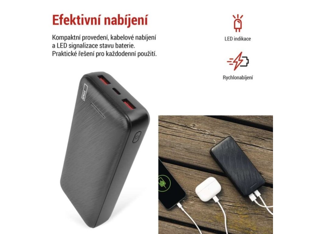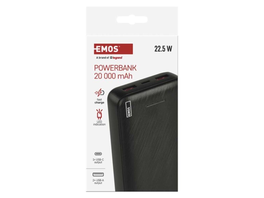Powerbanka EMOS AlphaQ3, 20 000 mAh, 22,5 W, černá