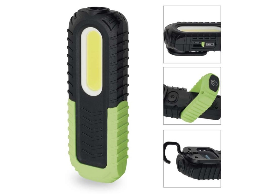 barva: černo-zelená|baterie součástí balení: ano|doba nabíjení: 3 h|doba svícení: 3–8,5 h|doba svícení detail: COB LED 100 % – 3 h, COB LED 50 % – 8,5 h, LED 100 % – 7,5 h|dosvit: COB LED 100 % – 30 m, COB LED 50 % – 15 m, LED 100 % – 40 m|fokus: ne|hmotnost: 196 g|LED indikace nabíjení: ano|LED indikace stavu akumulátoru: ano|materiál: plast + guma|maximální dosvit: 40 m|maximální světelný tok: 400 lm|nabíjecí: ano|napájení: Li-Ion akupack|nárazuvzdornost: ano|počet režimů svícení: 3|příslušenství: USB kabel|prodejní obal: 1 ks, krabice|režimy svícení: COB LED 100 %, COB LED 50 %, LED 100 %|rozměr: 52 × 32 × 165 mm|speciální funkce: funkce rychlého vypnutí, funkce ochrany baterie|světelný tok: COB LED 100 % – 400 lm, COB LED 50 % – 120 lm, LED 100 % – 120 lm|typ baterie: 2 000 mAh/3,7 V|typ napájecího konektoru: USB C|voděodolnost: ano (IP43)|vybavení: otočná rukojeť, klip, 1× hák, 1× magnet|záruční doba: 2 roky|zdroj světla: COB LED + LED|značka: EMOSObrázky jsou pouze ilustrativní.