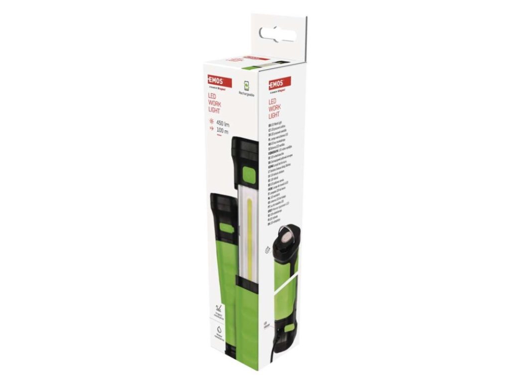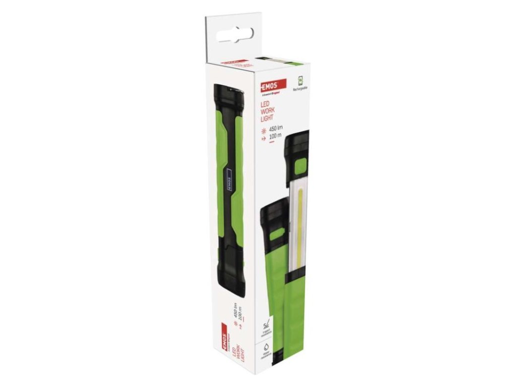 barva: zeleno-černá|baterie součástí balení: ano|doba nabíjení: 3,5 h|doba svícení: 7–16 h|doba svícení detail: COB LED 100 % – 7 h, LED 100 % – 16 h|dosvit: COB LED 100 % – 25 m, LED 100 % – 100 m|fokus: ne|hmotnost: 190 g|LED indikace nabíjení: ano|LED indikace stavu akumulátoru: ne|materiál: ABS plast|maximální dosvit: 100 m|maximální světelný tok: 450 lm|nabíjecí: ano|napájení: Li-Ion|nárazuvzdornost: ano|počet režimů svícení: 2|příslušenství: USB kabel|prodejní obal: 1 ks, krabice|režimy svícení: COB LED 100 %, LED 100 %|rozměr: 43 × 43 × 197 mm|speciální funkce: funkce ochrany baterie|světelný tok: COB LED 100 % – 450 lm, LED 100 % – 120 lm|typ baterie: 2 000 mAh/3,7 V|typ napájecího konektoru: USB C|voděodolnost: ano (IP44)|vybavení: magnet, hák|záruční doba: 2 roky|zdroj světla: COB LED + LED|značka: EMOSObrázky jsou pouze ilustrativní.