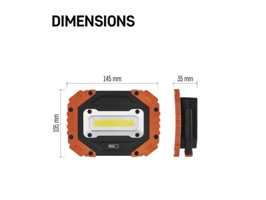 barva: černo-oranžová|baterie součástí balení: ne|doba nabíjení: neuvádí se|doba svícení: 8–14 h|doba svícení detail: COB LED 35 % – 14 h, COB LED 60 % – 11 h, COB 100 % – 8 h|dosvit: COB LED 35 % – 20 m, COB LED 60 % – 25 m, COB 100 % – 35 m|fokus: ne|hmotnost: 165 g|LED indikace nabíjení: neuvádí se|LED indikace stavu akumulátoru: neuvádí se|materiál: plast|maximální dosvit: 35 m|maximální světelný tok: 700 lm|nabíjecí: ne|napájení: 4× AA|nárazuvzdornost: ano|počet režimů svícení: 3|příslušenství: neuvádí se|prodejní obal: 1 ks, papírová krabička|režimy svícení: COB LED 35 %, COB LED 60 %, COB 100 %|rozměr: 145 ×105 × 35 mm|speciální funkce: funkce rychlého vypnutí|světelný tok: COB LED 35 % – 250 lm, COB LED 60 % – 400 lm, COB 100 % – 700 lm|typ baterie: LR6 (1,5 V)|typ napájecího konektoru: neuvádí se|voděodolnost: ano (IP43)|vybavení: otočná rukojeť|záruční doba: 2 roky|zdroj světla: COB LED|značka: EMOSObrázky jsou pouze ilustrativní.