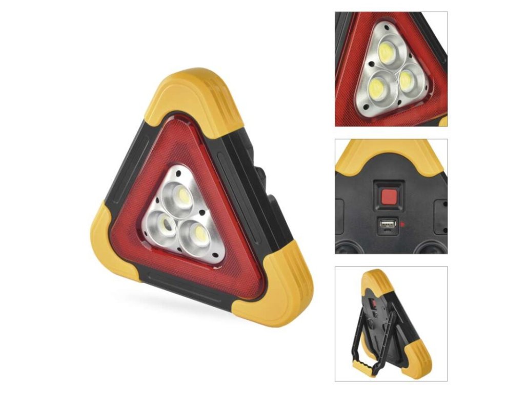 LED varovný trojúhelník, nabíjecí, COB LED + červená LED