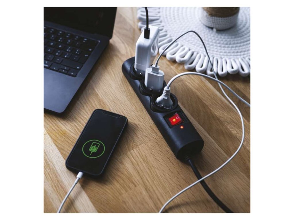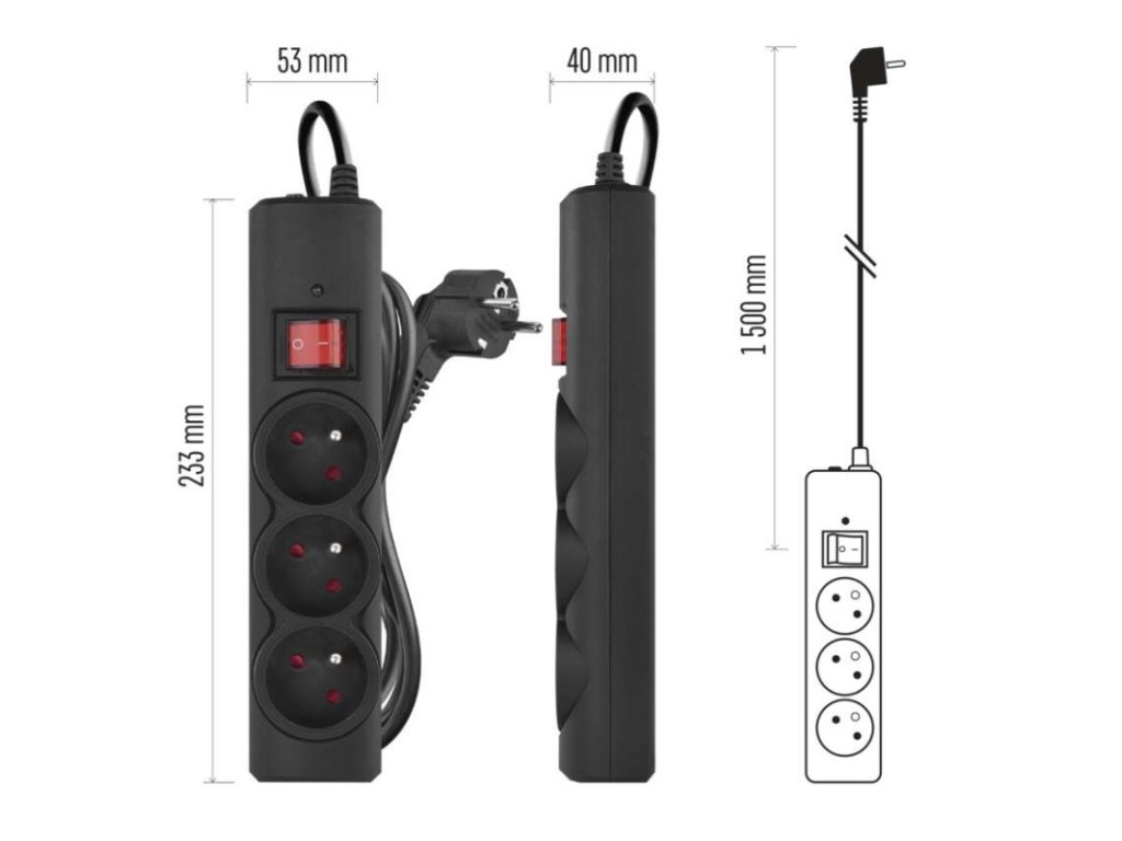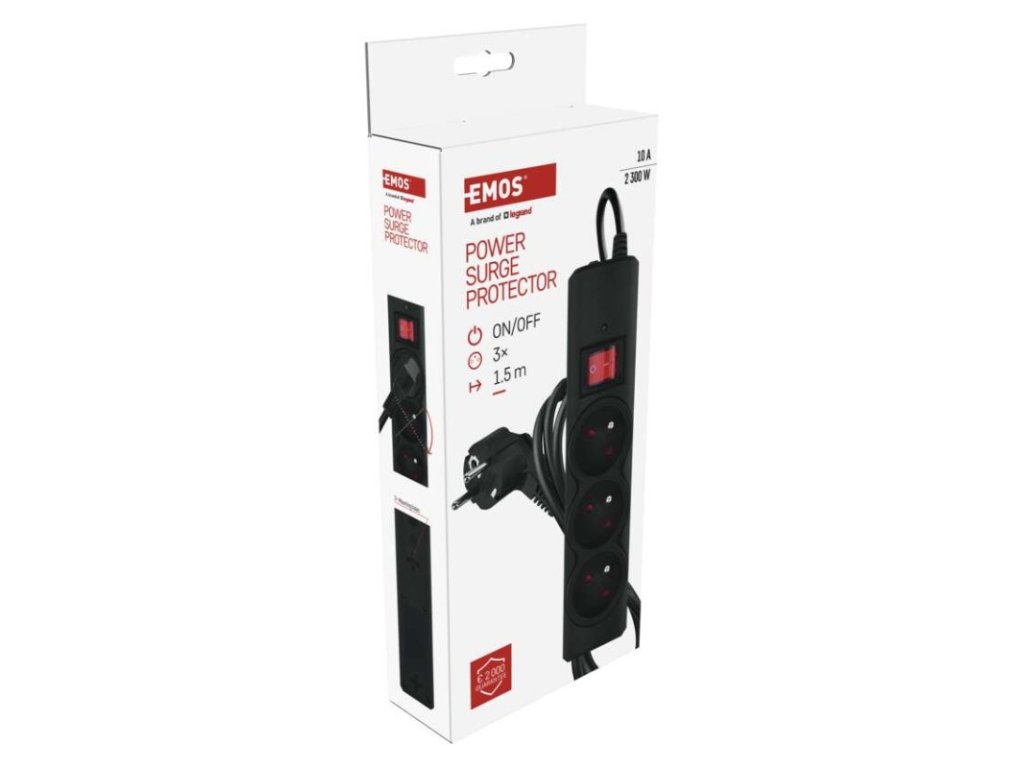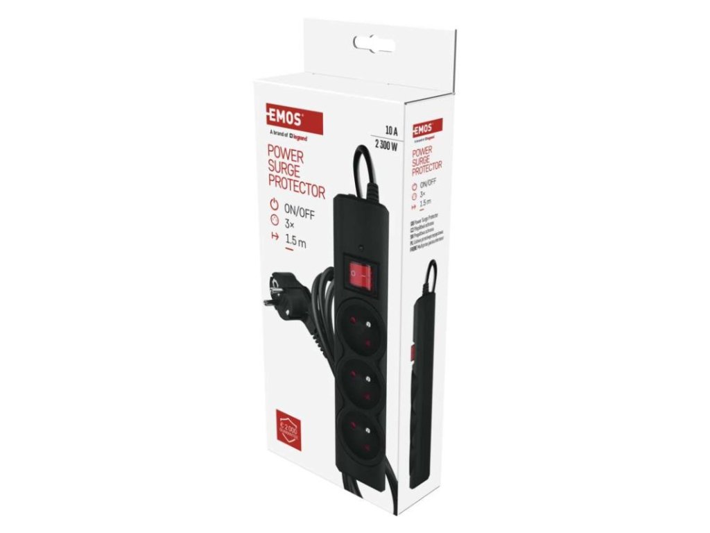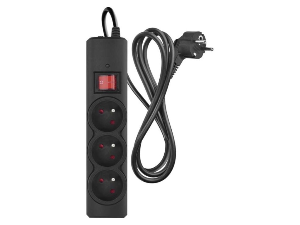 Přepěťová ochrana – 3 zásuvky, 1,5 m, černá