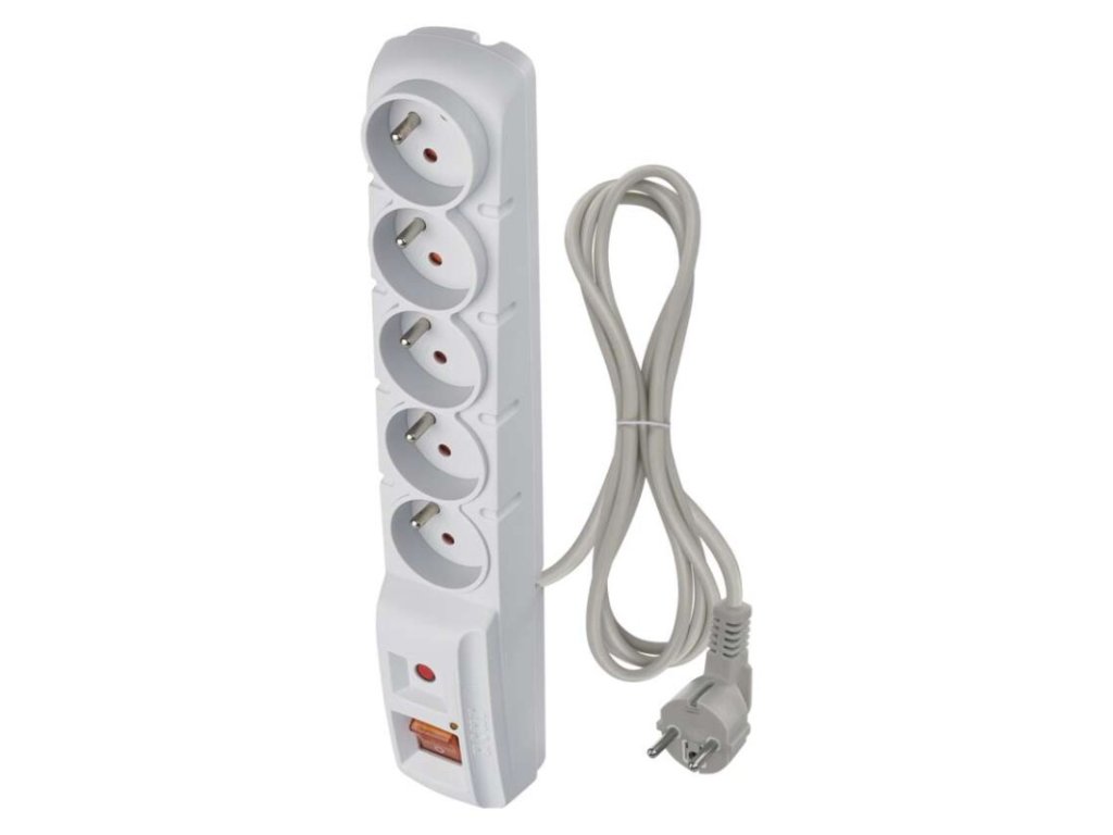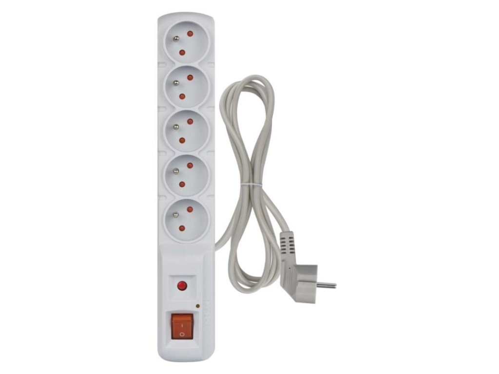 Přepěťová ochrana – 5 zásuvek 1,5m, šedá