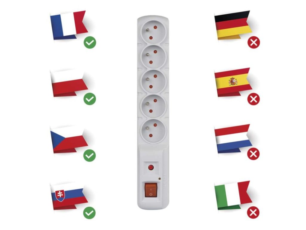 | Počet zásuvek: | 5× 2P + PE |