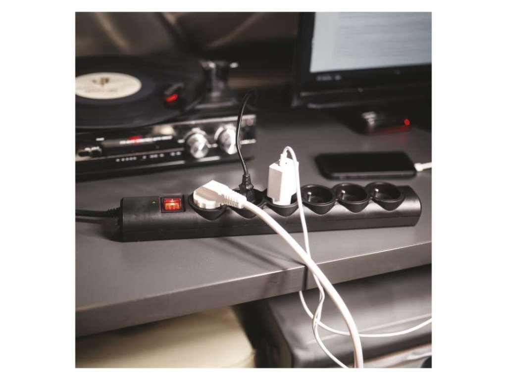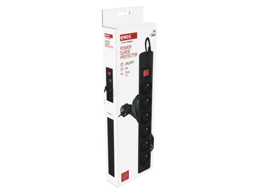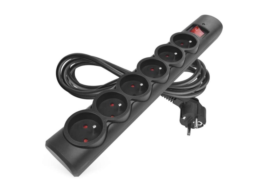 Přepěťová ochrana – 6 zásuvek, 3 m, černá