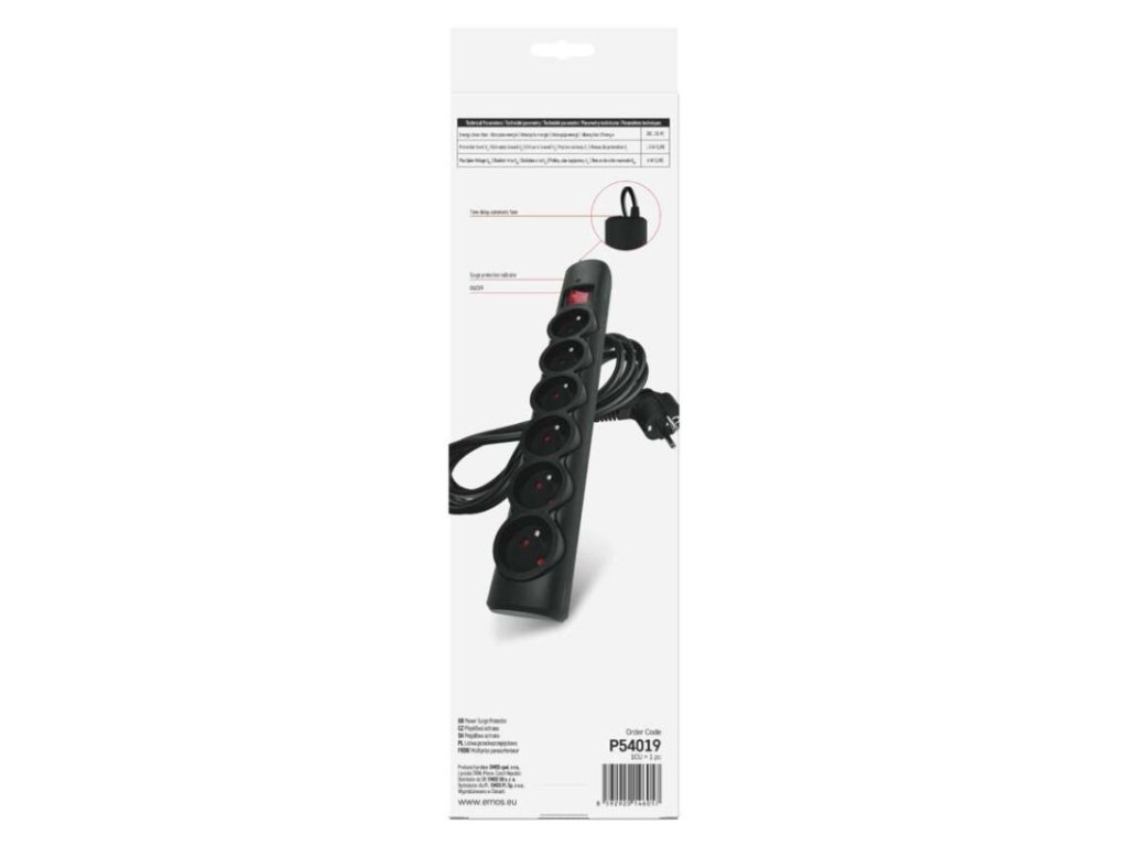 absorpce energie: 380 J (L-N)|anténní (koaxiální ochrana): ne|barva: černá|délka: 3 m|dětské clonky: ano|doba odezvy: 1 ns|EMI/RFI filtr: ne|garance: 2 000 €|indikátor přepětí: ano|indikátor zapojení: ne|jištení: –|jmenovité napětí: 250 V~, 50 Hz|max. proudová zátěž: 10 A max.|max. zátěž: 2 300 W|ochrana proti přetížení: ano, 10 A/ 250V~|ochranná úroveň Up: 1,3 kV (L/N)|počet zásuvek: 6× 2P + PE|prodejní obal: 1 ks, krabice|rozměr: 358 × 53 × 40 mm|rozsah kmitočtu: neuvádí se|tel. / fax / DSL ochrana: ne|USB výstup: ne|útlum: neuvádí se|vodič: H05VV-F3G 1,0 mm²|zkušební vlna U0c: 6 kV (L/N)Obrázky jsou pouze ilustrativní.