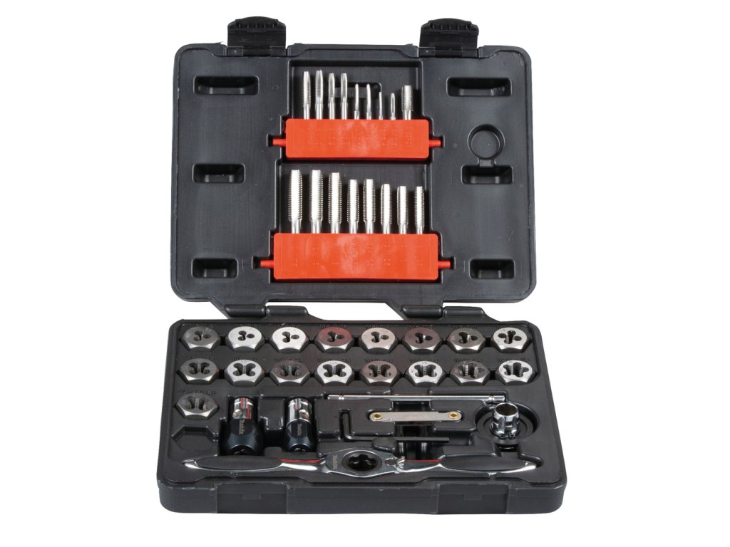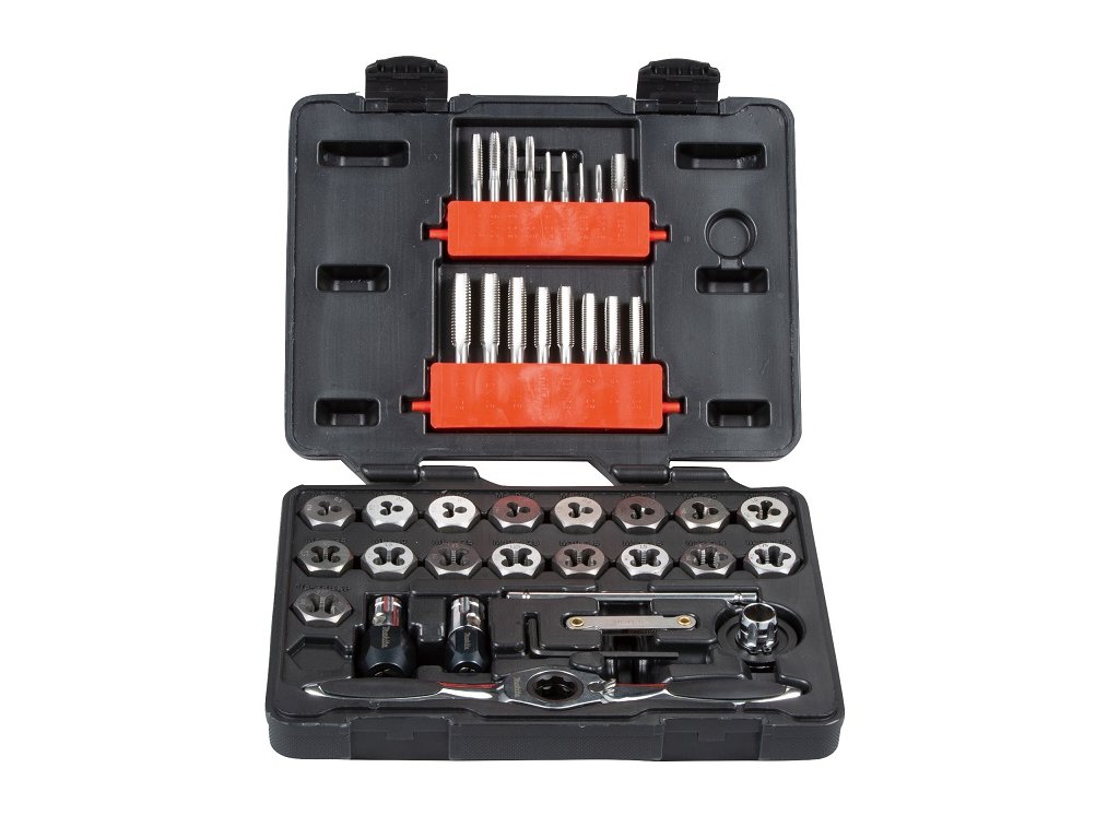 Sada 40 ks závitníku v plastovém kufru. Sada obsahuje : vratidlo s ráčnou, adaptér pro malé závitníky, adaptér pro závitníky, adaptér pro očka Hex, šroubovák, měrku, očka 3mm x 0.50, 3mm x 0.60, 4mm x 0.70, 4mm x 0.75, 5mm x 0.80, 5mm x 0.90, 6mm x 1.00, 7mm x 1.00, 8mm x 1.25, 9mm x 1.00, 9mm x 1.25, 10mm x 1.25, 10mm x 1.50, 11mm x 1.50, 12mm x 1.50 a 12mm x 1.75, závitníky 3mm x 0.50, 3mm x 0.60, 4mm x 0.70, 4mm x 0.75, 5mm x 0.80, 5mm x 0.90, 6mm x 1.00, 7mm x 1.00, 8mm x 1.25, 9mm x 1.00, 9mm x 1.25, 10mm x 1.25, 10mm x 1.50, 11mm x 1.50, 12mm x 1.50 a 12mm x 1.75.Doplňkové parametry