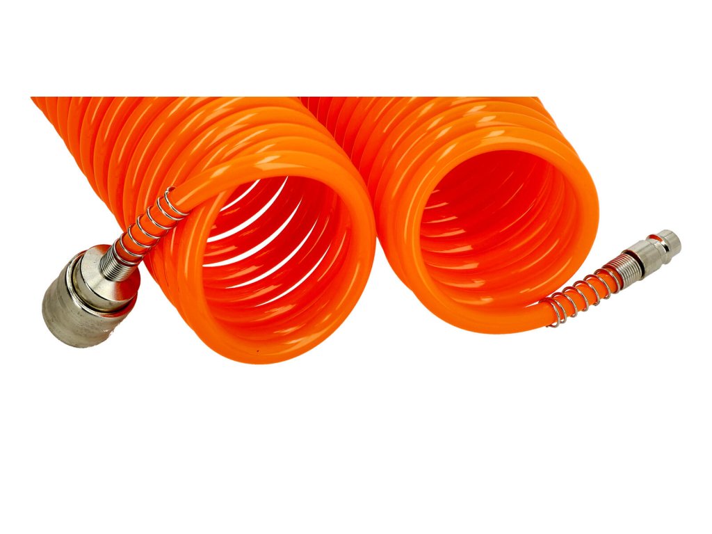 Tato 5metrová spirálová vzduchová hadice je vyrobena z pružných a odolných materiálů. Díky spirálovému provedení je pružná, snadno se s ní manipuluje a navíjí bez zamotávání. Tato hadice je ideální pro připojení pneumatického nářadí ke kompresoru, zajišťuje efektivní proudění vzduchu a odolnost pro každodenní použití.Obrázky jsou pouze ilustrativní.