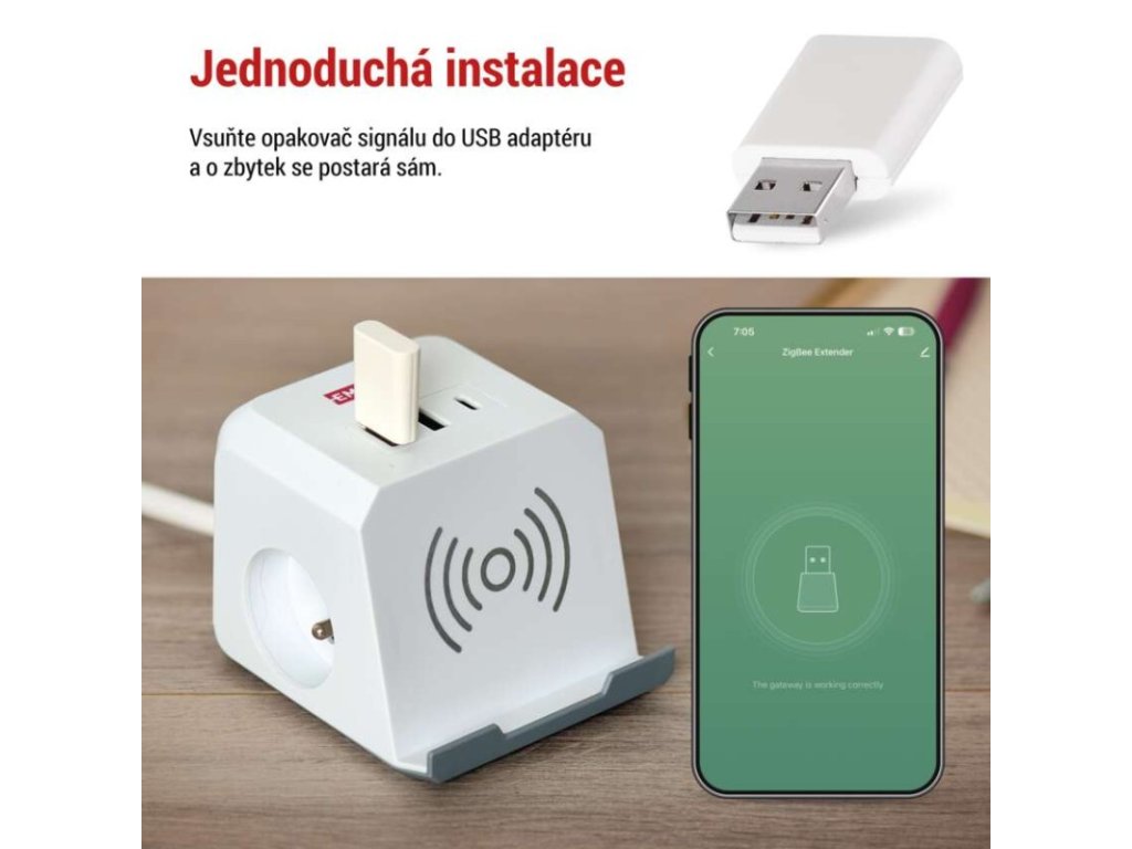 hloubka: 38,85 mm|hmotnost: 10 g|jazyky aplikace: EN, CZ, SK, PL, DE, HU, SI, FR, + 60 dalších jazyků|kompatibilita: EMOS GoSmart, TUYA, LIDL, Smartlife, Otevřený systém|maximální počet připojených klientů: –|napájení: 5 V DC/1,0 A|ovládání hlasovými asistenty: ne|párování: automatické, manuální|počet ovládacích tlačítek: –|podporované OS: Android, iOS|použití: automatizace|přenosová frekvence: 2,4 GHz (IEEE802.11b/g/n)|prodejní obal: 1 ks, krabice|protokol: Zigbee 3.0|šířka: 21,5 mm|typ produktu: ZigBee repeater|výška: 8,5 mm|zdroj součástí balení: neObrázky jsou pouze ilustrativní.