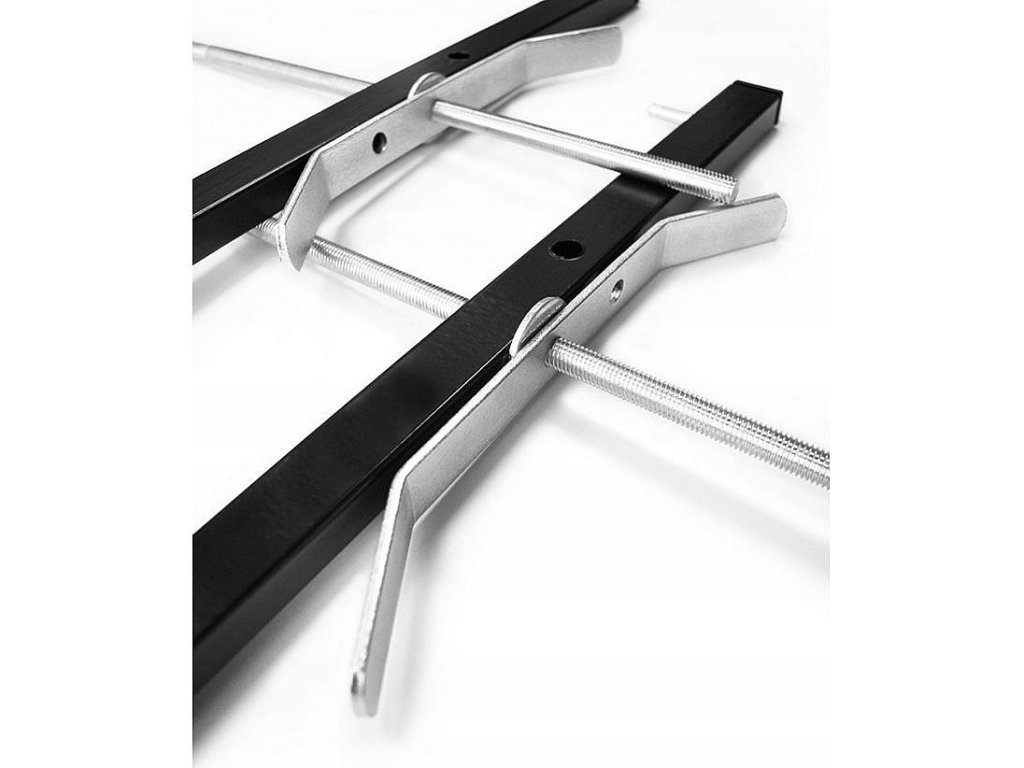 Držák je z hliníkového profilu a ocelových prvků.