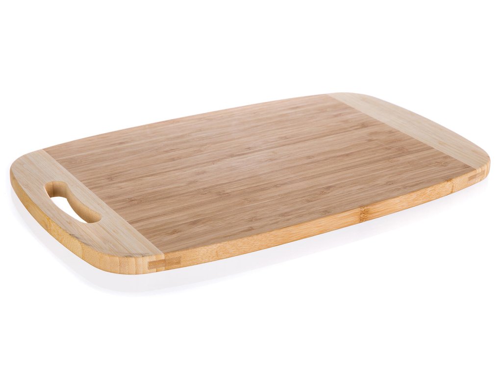 Prkénko 50 x 30 x 1,8 cm, BRILLANTE, bambus. rozměry: 50 x 30 x 1,8 cm materiál: bambusové dřevo hmotnost netto: 1,735 Prkénko dřevěné krájecí Brillante Bamboo je vhodné na krájení masa, zeleniny a dalších potravin. Díky své velikosti umožňuje snadnější porcování a krájení větších kusů potravin. Prkénko je vyrobeno z bambusu v dvojbarevném provedení a je opatřeno praktickým otvorem pro zavěšení.Obrázky jsou pouze ilustrativní.