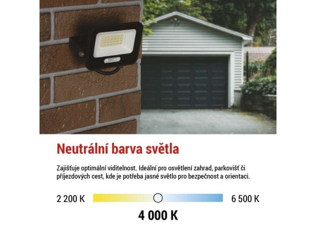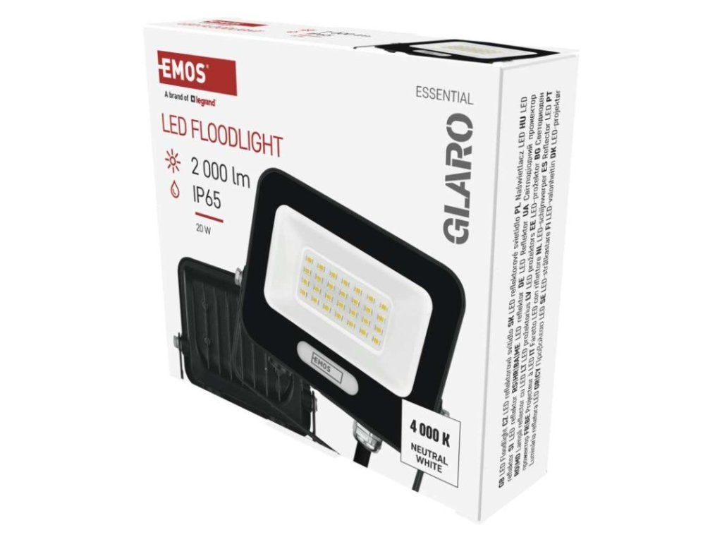 LED reflektor GLARO 20W, černý, IP65, 2000 lm, neutrální bílá
