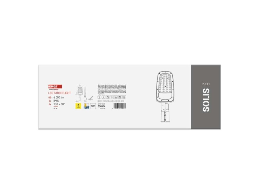 LED veřejné svítidlo SOLIS 50W, 6000 lm, neutrální bílá