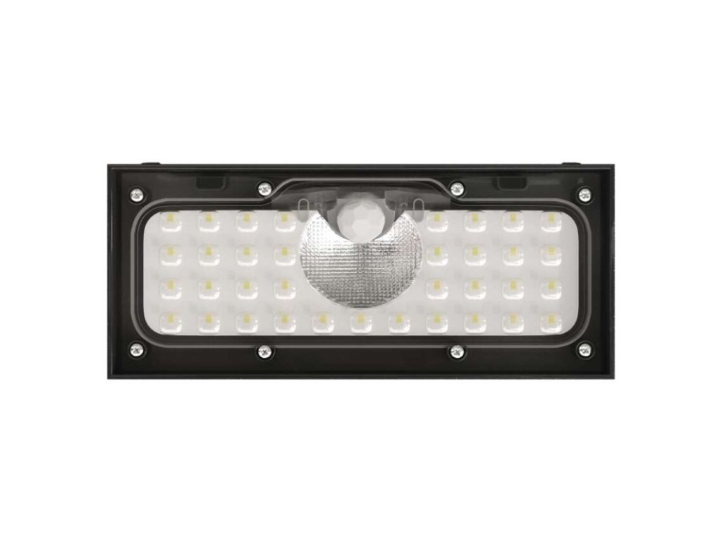 akumulátor: Li-Ion 3 000 mAh|barva: černá|barva světla: neutrální bílá|délka přívodního kabelu: –|doba svícení na AKU: 35 hodin|dosah PIR senzoru: 7 m|energetická třída použitého světelného zdroje: –|flicker-free: nebliká|frekvence: –|index podání barev (CRI): Ra > 80|kategorie: CLASSIC|krytí: IP65|materiál difuzoru: plast (PC)|materiál přívodního kabelu: –|materiál těla: plast (ABS+PC)|napájení: solární|napětí: 3,7 V|PIR senzor: ano|počet průchozích zásuvek: –|použití: povrchová montáž|příkon: –|prodejní obal: 1 ks, krabice|proud: –|řada: BRIXO|rozměr: 230 × 97 × 43 mm|rozsah pracovní teploty: -20 °C až +50 °C|stmívání: –|stupeň ochrany proti mechanickým nárazům: –|světelná účinnost: –|světelný tok: 900 lm|teplota chromatičnosti: 4 000 K|typ přívodního kabelu: –|typ průchozích zásuvek: –|typ stmívání: –|účiník: –|úhel vyzařování: 140° × 70°|záruční doba: 2 roky|zdroj světla: LED|životnost: –|zkušební žárovka součástí balení: –Obrázky jsou pouze ilustrativní.