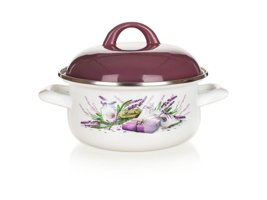Rendlík LAVENDER 20 cm, s poklicí. objem: 2,1 l průměr: 20 cm výška (bez poklice): 9,7 cm materiál: smalt tloušťka stěny): 0,6 mm barva: rendlík - bílá s dekorem levandule, poklice fialová Smaltovaný kastrol LAVENDER 1 l. Vysoká poklice ve fialové barvě, kastrol s bílou glazurou a dekorem na vnější straně. Kastrol lze používat na všechny typy varných desek mimo indukce. elektrika: ano plyn: ano sklokeramika: ano indukce: ne myčka: ano mikrovlnka: ne trouba: neObrázky jsou pouze ilustrativní.