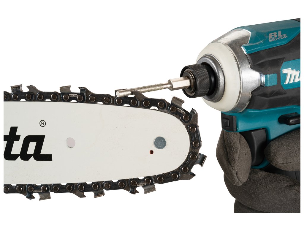 Pilník pro broušení řetězu v motorové pile pomocí AKU šroubováku. Kulatý pilník 4,0 mm, upnutí 1/4" šestihranná stopka.Obrázky jsou pouze ilustrativní.