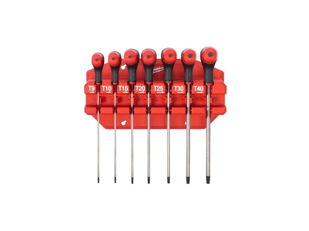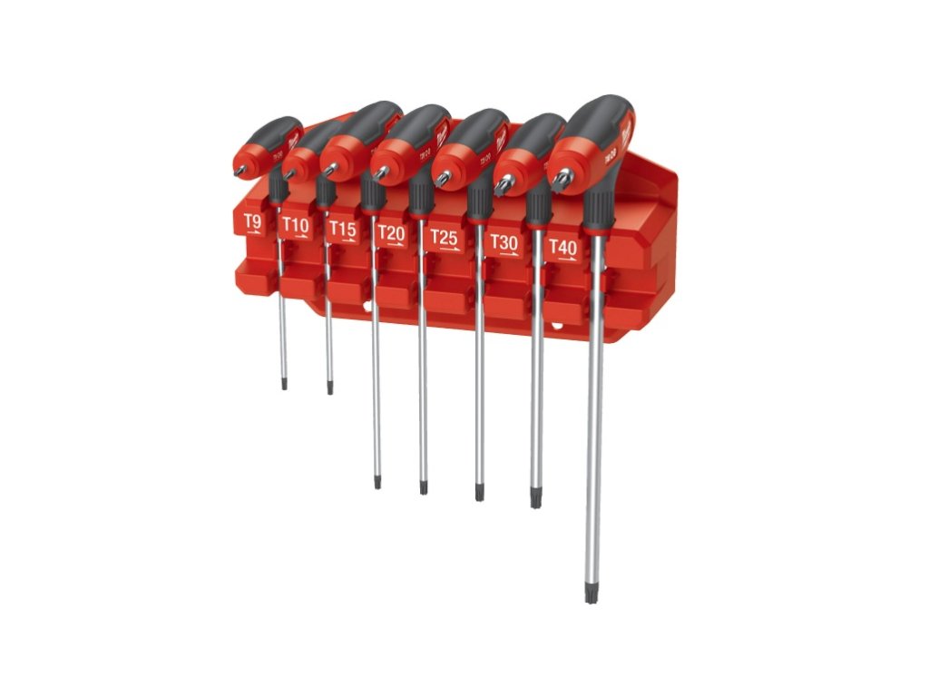 Sada klíčů TORX s komfortní T-rukojetí na magn. věšáku 7ks (T9-40), MILWAUKEE (4932498690)