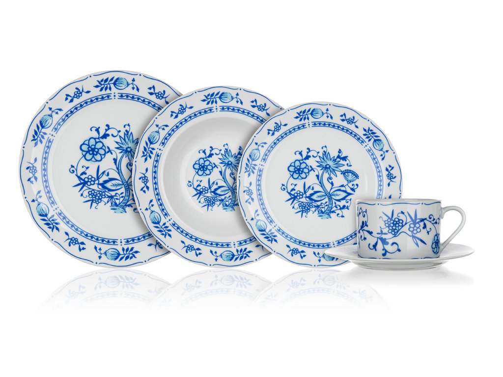 Sada jídelní ONION, 30díl. porcelánová. sada obsahuje: - 6 x hluboký talíř - 6 x mělký talíř - 6 x dezertní talíř - 6 x podšálek - 6 x šálek materiál: porcelán 30dílná jídelní sada s tradičním dekorem ONION. Nádobí lze používat do mikrovlnné trouby a mýt v myčce na nádobí.Obrázky jsou pouze ilustrativní.