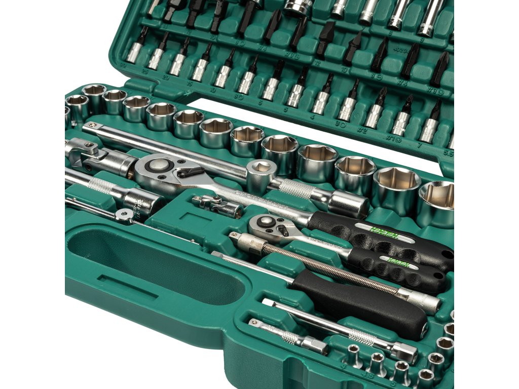 Nejprodávanější sada hlavic HONITON, která by neměla chybět v žádné dílně. Její kompletní složení hlavic 1/4” a 1/2”, bitů a nástavců z ní dělá nenahraditelného pomocníka. Všechny části jsou vyrobeny z houževnaté CrV oceli, která je certifikovaná strojírenským zkušebním ústavem. Obsah tvoří velmi dobře kombinovaná sada v přehledném kufru. Zástrčné šroubovací hlavice PH, PL, Imbus a TRX. Klíče na svíčky 16 a 21 mm. Ráčny s přepínací páčkou a uvolňovacím tlačítkem. Nejpoužívanější rozměry 1/4” a 1/2” hlavic z kvalitní CrV oceli. Nářadí prověřené v těch nejnáročnějších podmínkách.Obrázky jsou pouze ilustrativní.