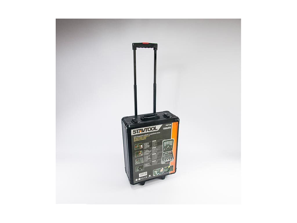 STAVTOOL Sada nářadí v pojízdném boxu 188 dílů | 370x210x520 mm, hliníkový box