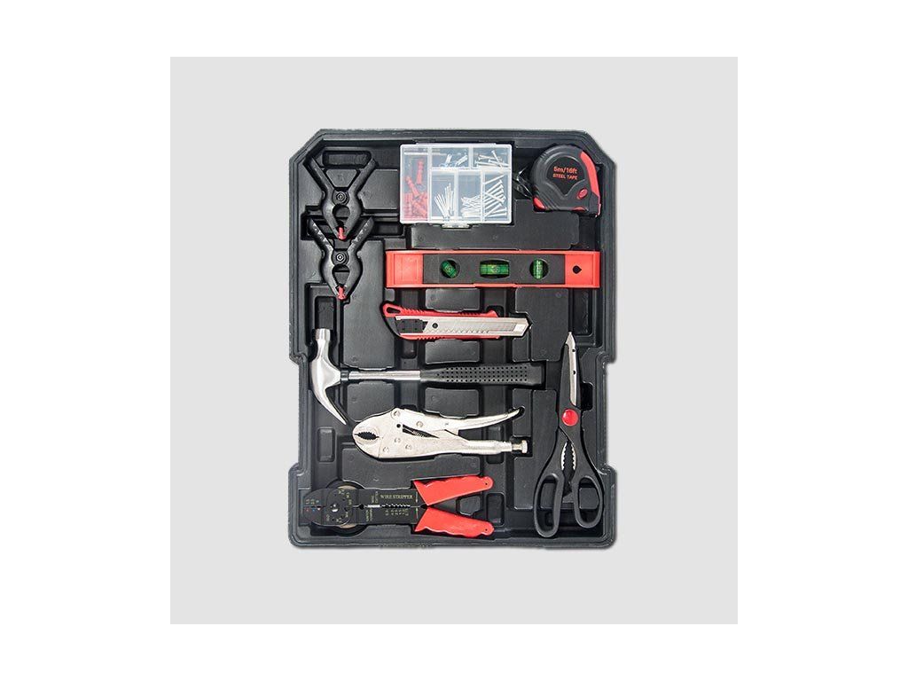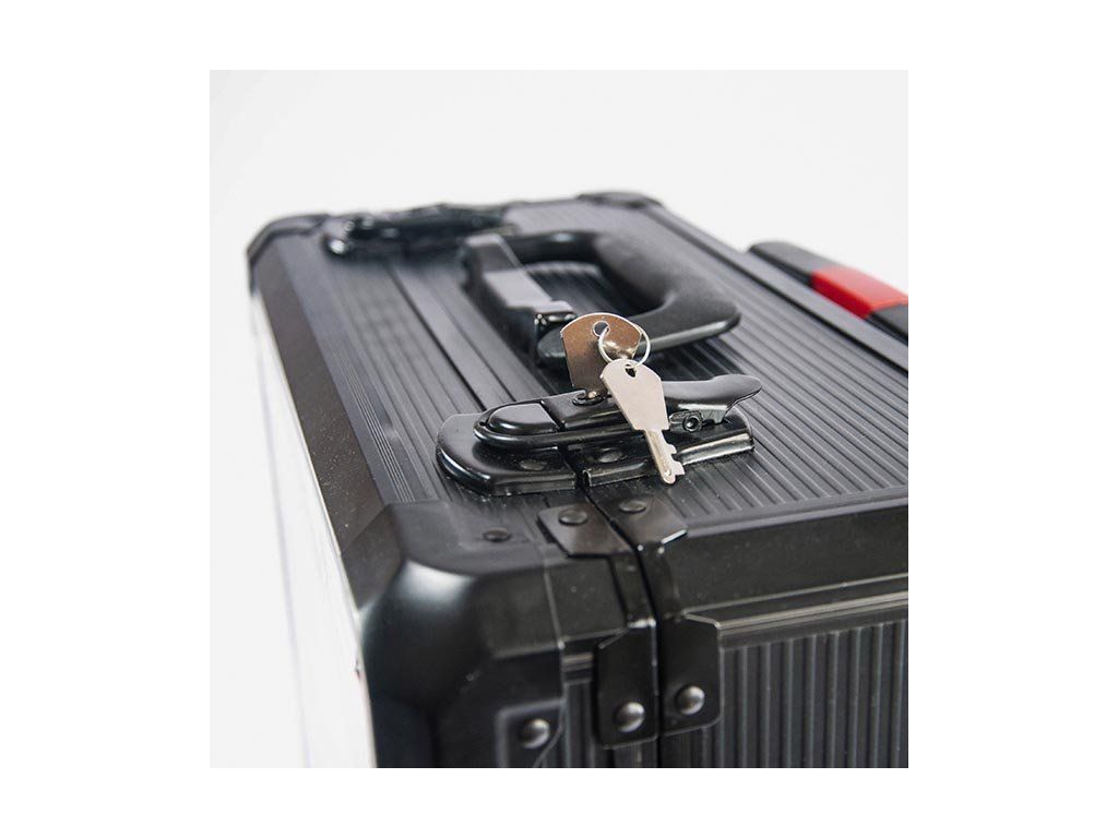 Sada 188 dílů nářadí v hliníkovém kufru na kolečkách. Nářadí uloženo na plastových platech s prolisy pro každý kus zvlášť, což zabraňuje smíchání a vysypání nářadí při převozu. Nezbytný pomocník každého kutila a montéra, ideální pro převoz v autě.Obrázky jsou pouze ilustrativní.