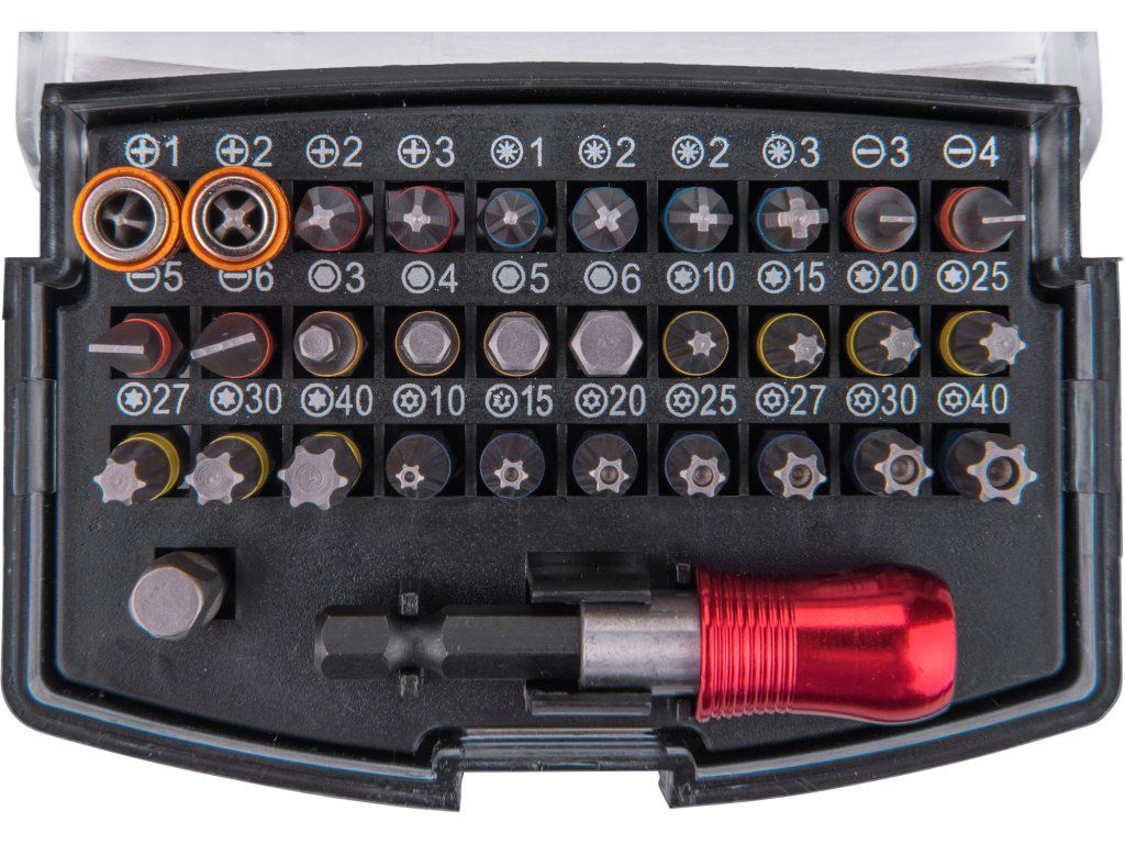 | doplňující parametr: | (-) 3-4-5-6mm, PH 1-2-2-3, PZ 1-2-2-3, HEX 3-4-5-6mm, T 10-15-20-25-27-30-40, TTa 10-15-20-25-27-30-40, magnetický držák hrotů F |