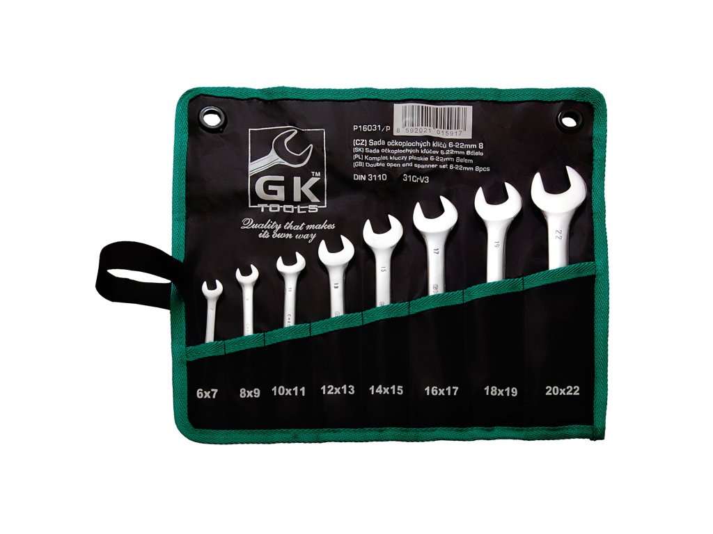 GK TOOLS Sada plochých klíčů, chrom | 6-22 mm, 8 dílů, textilní obal