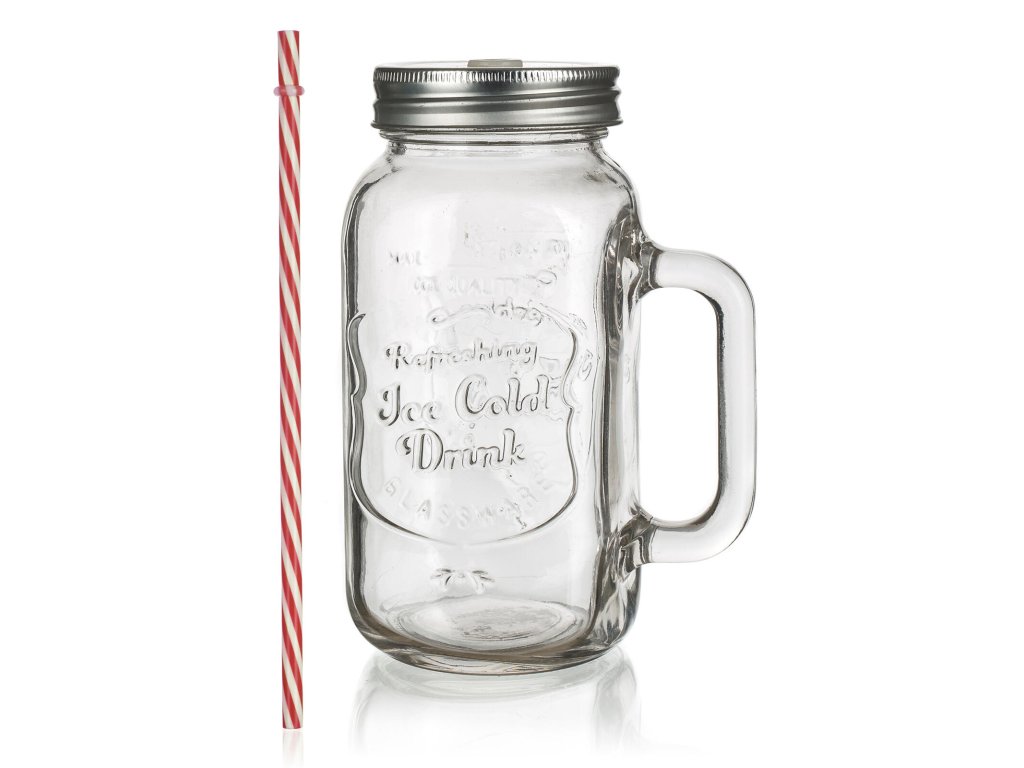 Hrnek 700 ml MADEIRA, s víčkem a brčkem, sklo / kov / PH. objem: 700 ml výška: 16 cm materiál: sklo, plechové víčko, plastové brčko Skleněný hrnek s uchem je opatřený praktickým šroubovacím plechovým víčkem stříbrné barvy a brčkem. Hrnek je ideální na limonádu, ledové čaje a koktejly. Skvěle se hodí na zahradní slavnost, letní párty či svatbu.Obrázky jsou pouze ilustrativní.