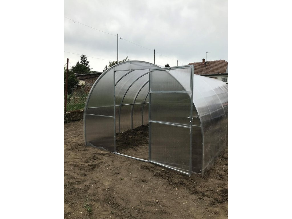 Skleník zahradní PRESTIŽ 4 x 3 m, oblouk, polykarbonát. Technická specifikace: rozměry (Š x V x D): 3 x 2 x 4 m tloušťka polykarbonátu: 4 mm, zdravotně nezávadný, certifikovaný sněhová zátěž: 180 kg / m2 (cca 80 cm čerstvého / 40 cm usazeného sněhu) odolnost vůči větru: 20 m / s konstrukce: oblouková, svařovaná, ocelová, pozinkovaná rozměr profilu: 30 x 20 x 1 mm vzdálenost mezi oblouky: 0,67 m základy: nevyžaduje možnost prodloužení: ano, násobky 2 m počet dveří: 2 počet oken: 2 boční větrací okénko: možné doobjednat pokrytí: 4 mm, čirý dutinkový polykarbonát UV filtr: ano váha základního modulu (4 m): 96 kg váha prodlužovacího modulu (o 2 m): 32 kg záruka na konstrukci: 5 let záruka na polykarbonát: 10 let na poškození při krupobití tvar: oblouk šířka: 3 m výška: 2 m délka: 4 m konstrukce: pozinkovaná ocel polykarbonát: 4 mm rozměr trubkového profilu: 30 x 20 mm rozteč oblouků: 0,67 m dveře (na pantech): 2 x jednokřídlé 1,8 x 0,85 m větrácí okno čelní: 2 ks vyklápěcí max. zatížení: 150 kg / m2 způsoby ukotvení: zakopání do země / na pevný základ záruka: 5 let Pro koho je model určen? Skleník ideální i do extrémních klimatických podmínek. Oproti modelu PROSTOR má větší počet oblouků (s roztečí pouze 67 cm) a je suverénně nejodolnějším skleníkem. Robustní konstrukce: PRESTIŽ je schopen odolat sněhovému zatížení až 180 kg / m2 (odpovídá 80 cm čerstvého sněhu). Extra robustní svařovaná konstrukce s profilem 40 x 20 mm dává záruku, že se nemusíte obávat ani krutých zim. Ochrana proti korozi. Pozinkovaná úprava chrání rám skleníku dokonale proti korozi. Profil je zinkovaný z vnější i vnitřní strany. Svařované spoje jsou ošetřeny zinkovým nátěrem. Skleník PRESTIŽ Vám tak bude věrně sloužit po mnoho let. Péče o úrodu. Skleník je pokryt vysoce kvalitním a odolným dutinkovým polykarbonátem německé výroby s UV filtrem. Chrání tak rostliny před spálením nebo přízemními mrazíky. Je plně kompatibilní pro použití se systémy kapkové závlahy. Obsah balení. Obdržíte kompletní konstrukci a všechny potřebné montážní prvky, šrouby, stejně jako nožičky ve tvaru T. Není třeba budovat základy pro tento skleník. Skleník je možné nekonečně prodlužovat.Obrázky jsou pouze ilustrativní.