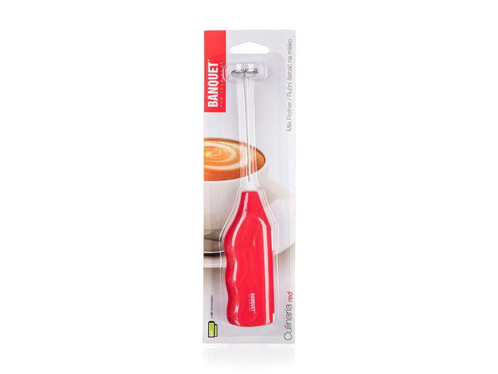 Šlehač na mléčnou pěnu CULINARIA, PH / nerez ČRV. délka: 20 cm materiál: ABS, nerez barva: červená Ruční šlehač na mléko CULINARIA Red má rukojeť vyrobenou z plastu (ABS) v krémové barvě, šlehací část je z nerezové oceli 18/8. Napájení 2 x AA tužková baterie, nejsou součástí balení.Obrázky jsou pouze ilustrativní.