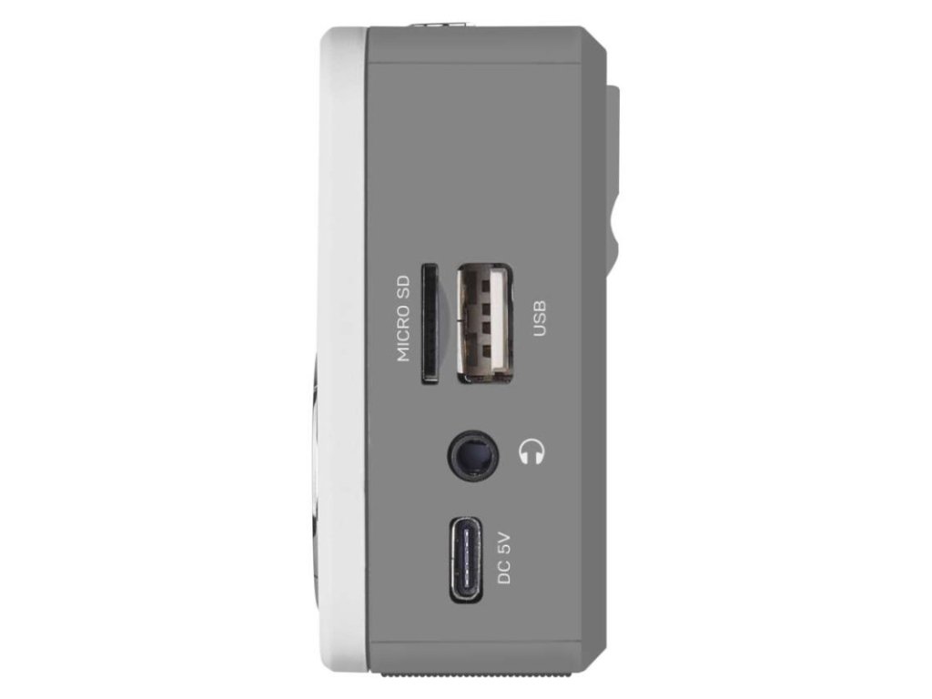 anténa: teleskopická s kloubem|barva: bílá/šedá|bluetooth pro připojení např. telefonu, tabletu: ne|displej: LED|doba provozu na baterii: min. 10 hodin|dosah bluetooth: neuvádí se|frekvence tuneru: FM 88–108 MHz|frekvenční rozsah reproduktoru: neuvádí se|funkce budíku: ne|funkce handsfree: ne|hmotnost: 200 g|integrovaný mikrofon: ne|napájecí zdroj součástí dodávky: ne|napájení: 5 V/USB-C (napájecí zdroj není součástí balení)|odstup signálu/šum: >80 dB|podpora MP3: ano|potlačení signálu: neuvádí se|prodejní obal: 1 ks, krabice|rádio: ano|reproduktor: 50 mm/4 Ohm/3 W|rozměr: 125 × 30 × 70 mm|rozsah dekodéru MP3: 8–320 Kbps|typ baterie: Nokia BL-5C/400 mA|USB vstup: ano|verze bluetooth: neuvádí se|vstup AUX: ne|vstup pro microSD kartu: ano|výstup na sluchátka: anoObrázky jsou pouze ilustrativní.