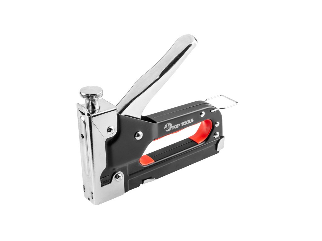Sešívačka na čalounění 6-14 mm, sponky typu J, kovové tělo, nastavení hnací síly, pojistný kroužek Sešívačka Top Tools (č. 41E904) pro sponky J o velikosti 6-14 mm. Kovové pouzdro zaručuje odolnost nástroje. Ideální pro čalounické a dekorační práce, upevňování fólií nebo kůže. Díky možnosti nastavení síly vkládání sponek ji lze použít pro tvrdé i měkké materiály. Ergonomická a odolná kovová rukojeť je potažena plastem pro větší pohodlí při práci.Obrázky jsou pouze ilustrativní.