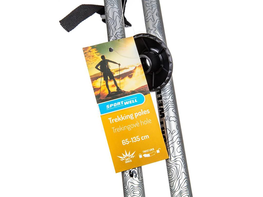 Hole trekingové SPORTWELL TWIST LOCK. nastavitelná výška: 65 - 135 cm průměr hole: 18, 16, 14 mm materiál: ALU 6061, gumová tvarovaná rukojeť 3sekční trekingové hole Sportwell. S poutky pro lepší a příjemnější úchop. Komfortní prodloužení rukojeti pěnovým gripem. ANTISHOCK systém umožňuje komfortní pohyb v terénu. Fixační systém nastavení délky hole TWIST LOCK. Šetří svalstvo, vazy a klouby. Ocelová špička zajišťuje optimální přenesení sil a stabilitu. Je vhodná pro vysokohorskou turistiku. Gumová patka je vhodná pro rovné povrchy, sada kloboučků pro celoroční použití.Obrázky jsou pouze ilustrativní.