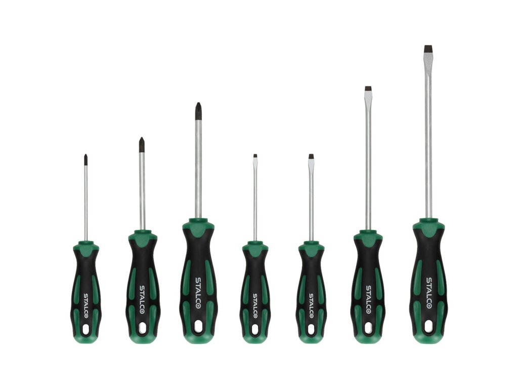 Šroubovák sada 7díl. PHILLIPS, PLOCHÉ STALCO. sada obsahuje 7 ks šroubováků CrV: - SL3 x 75 - SL4 x 75 - SL5,5 x 125 - SL6,5 x 150 - PH0 x 75 - PH1 x 75 - PH2 x 100 Sada šroubováků určených pro montáž a opravy.Obrázky jsou pouze ilustrativní.