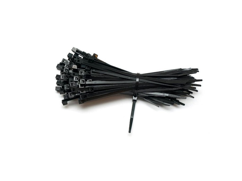 Stahovací pásky PS černá 3,5x200mm, 100ks